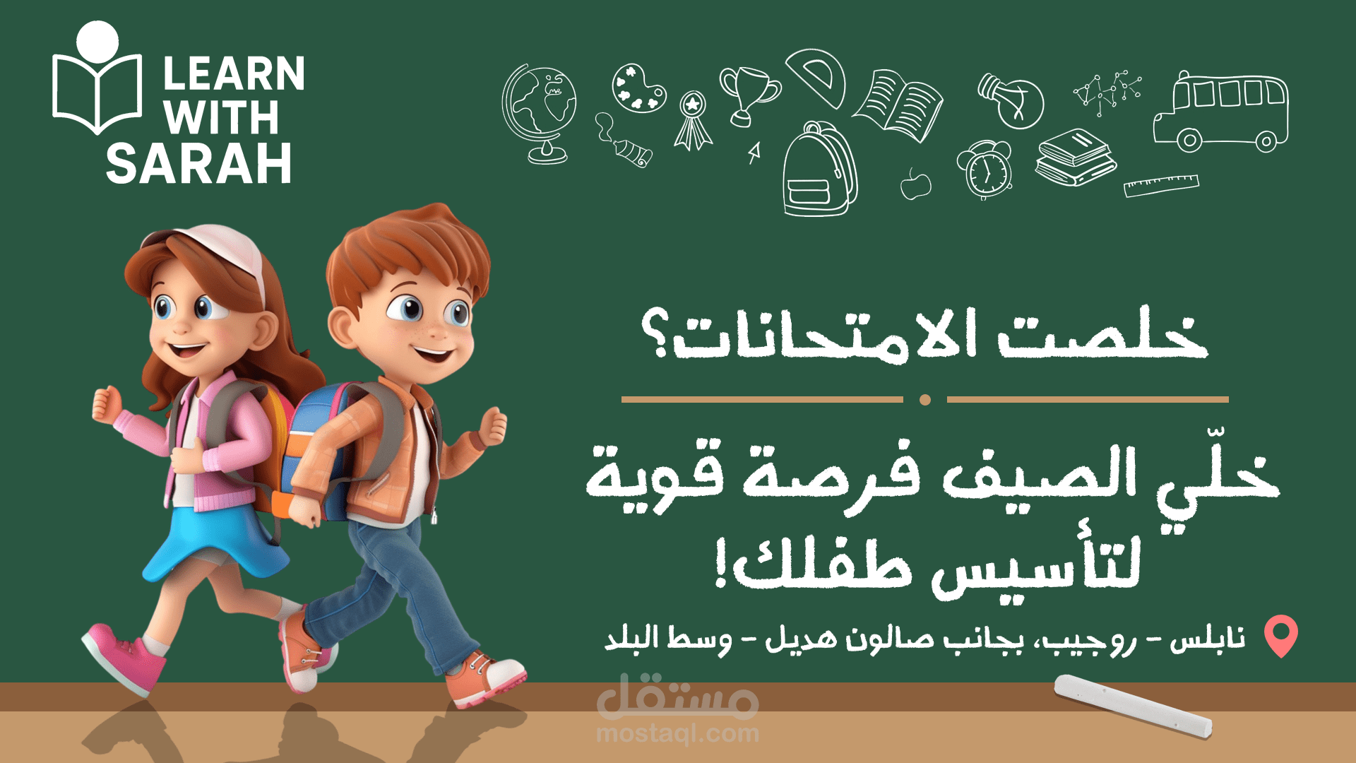 تصميم اعلاني لصفحة تابعة لمعهد يقوم بتقديم الدروس لطلاب المدارس. التصميم عبارة عن اعلان لعرض الدورة الخاصة بالعطلة الصيفية تم تصميمه بما يتناسب مع غرضه.