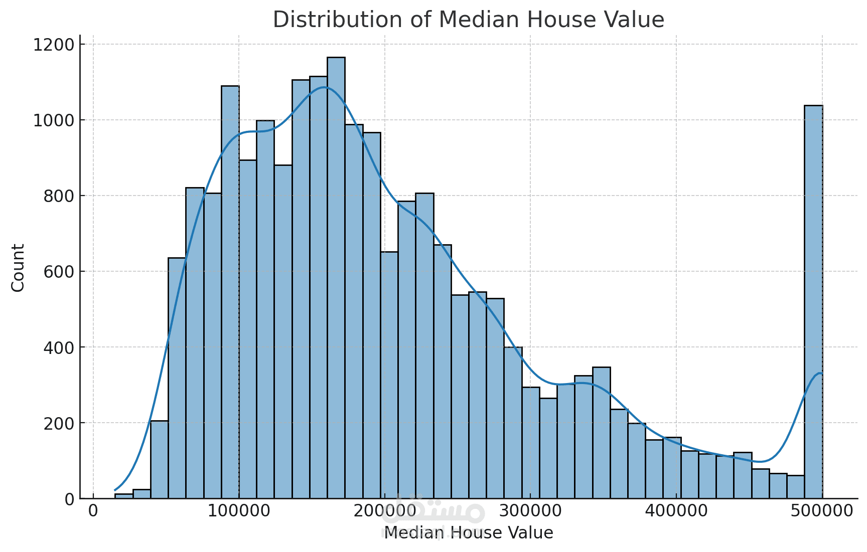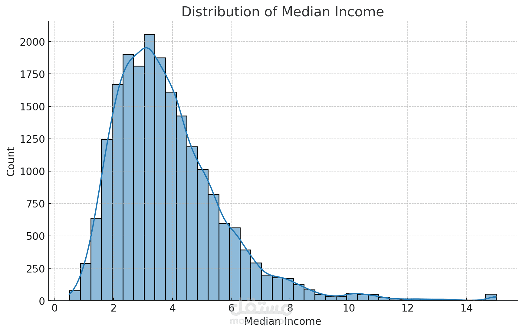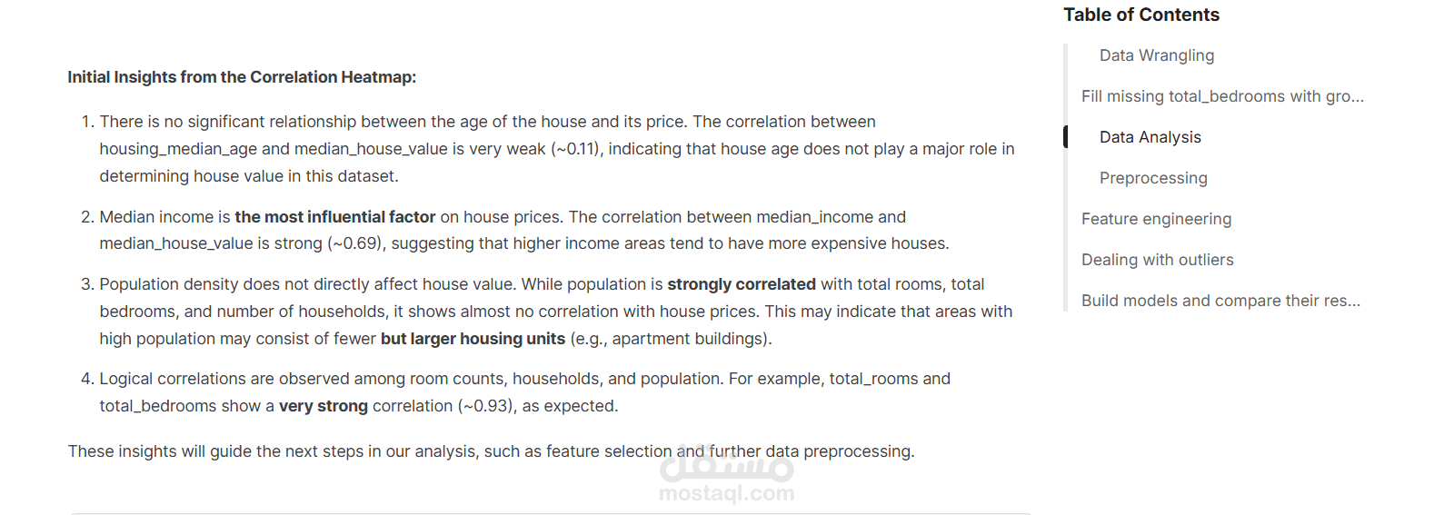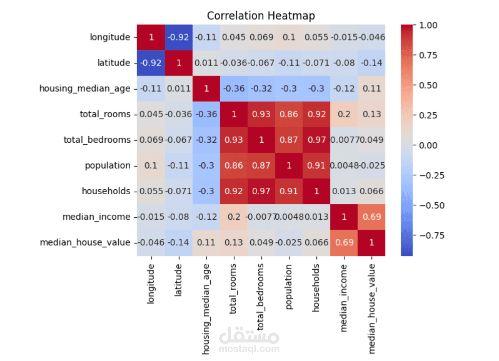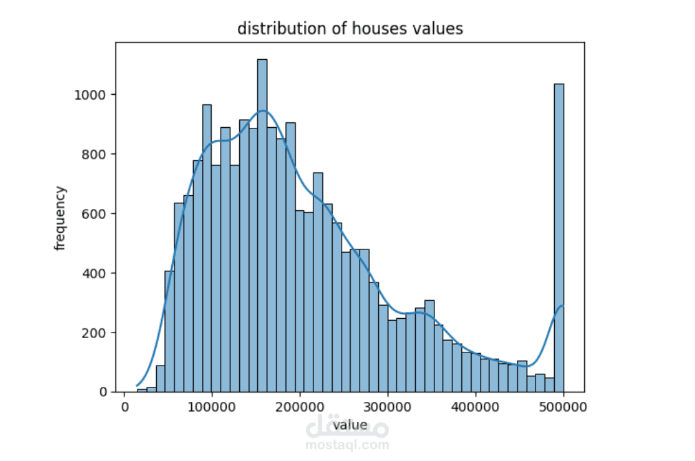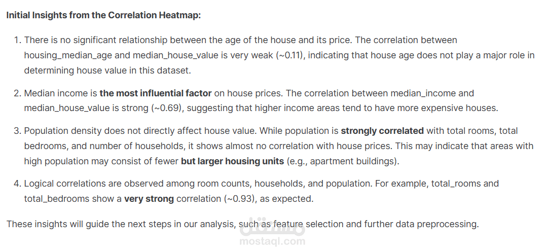 قمت بتحليل بيانات أسعار المساكن في كاليفورنيا باستخدام أدوات Python, Pandas, NumPy, Matplotlib, Seaborn, Scikit-learn.