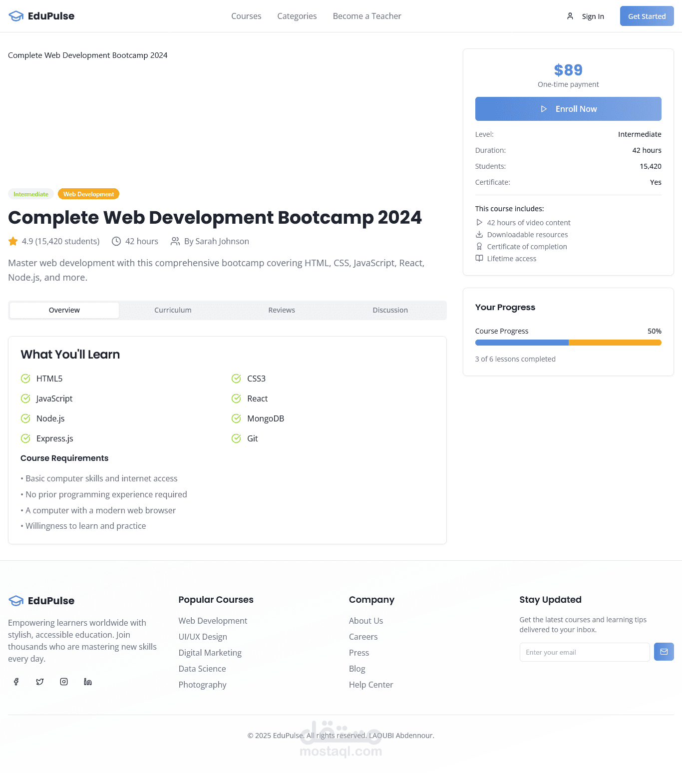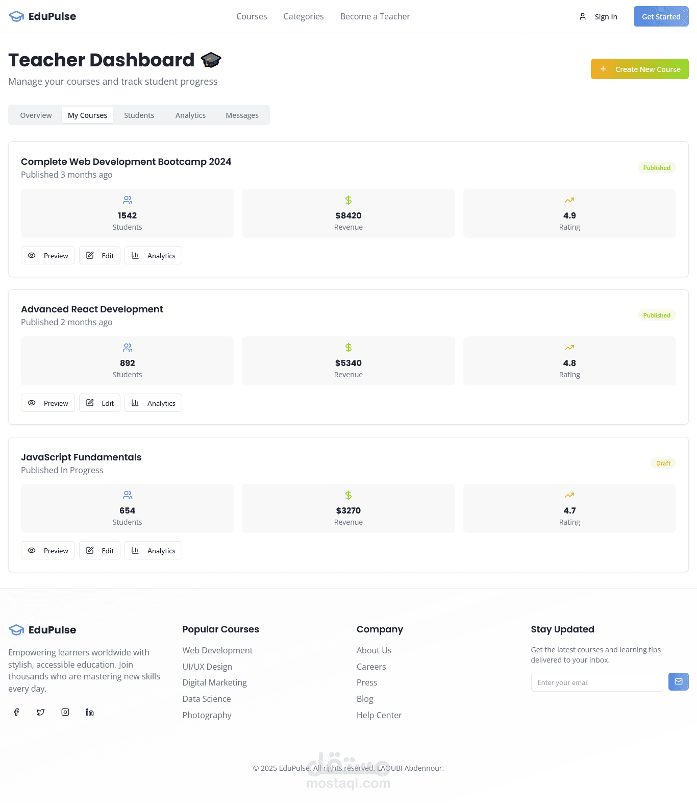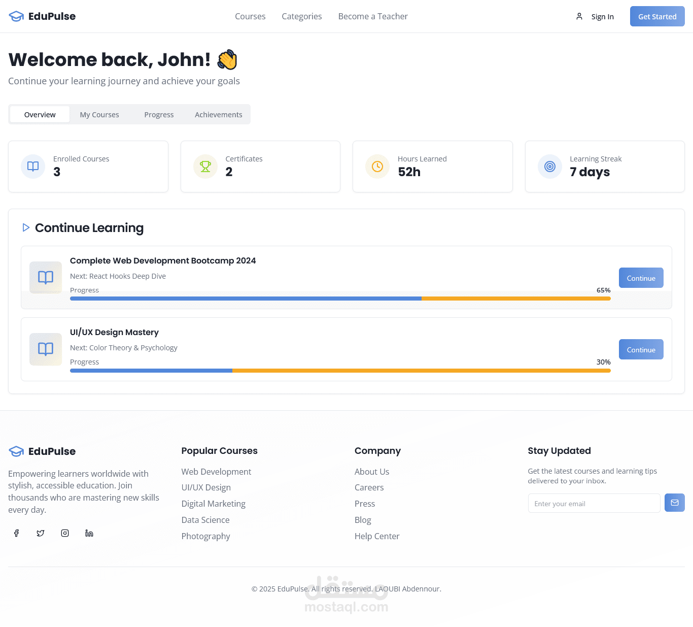 EduPulse هي عبارة عن منصة تعليمية تقدم دورات متنوعة في شتى المجالات.