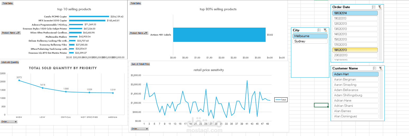قمت بإعداد لوحة تحكم تفاعلية (Dashboard) باستخدام برنامج Excel لعرض وتحليل بيانات المبيعات.
