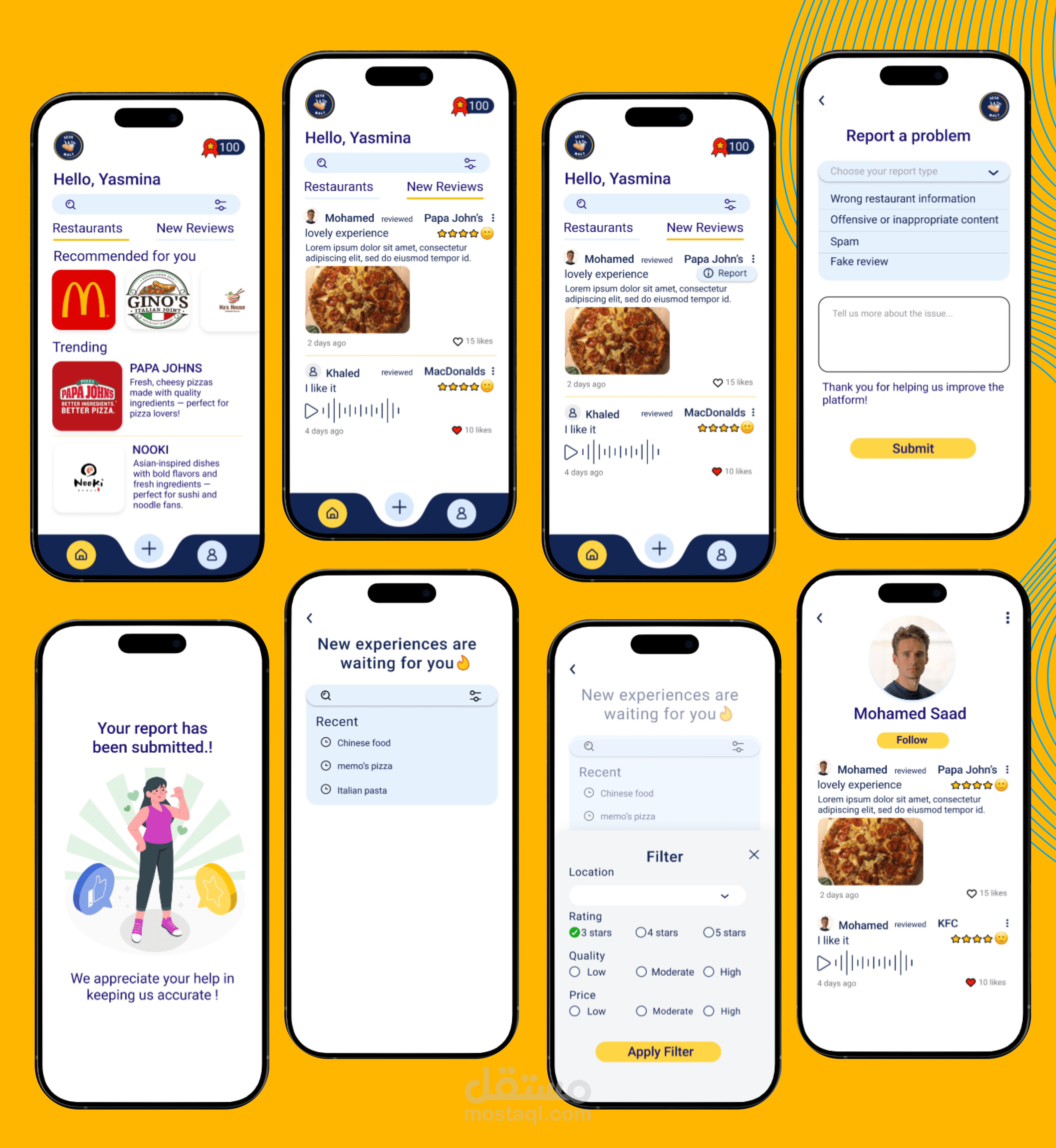"عيش وملح" هو تطبيق يهدف لتجربة طعام مميزة من خلال مراجعات حقيقية للمطاعم والأكلات. التطبيق بيتيح للمستخدمين استكشاف المطاعم القريبة، قراءة تجارب وآراء العملاء، ومشاركة تقييماتهم وصور الأطباق اللي جربوها.
