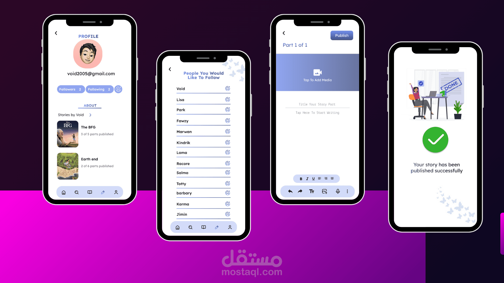 مجتمع للكتّاب (Community) يسمح لهم بنشر قصصهم، والحصول على تقييمات وتعليقات من القرّاء.