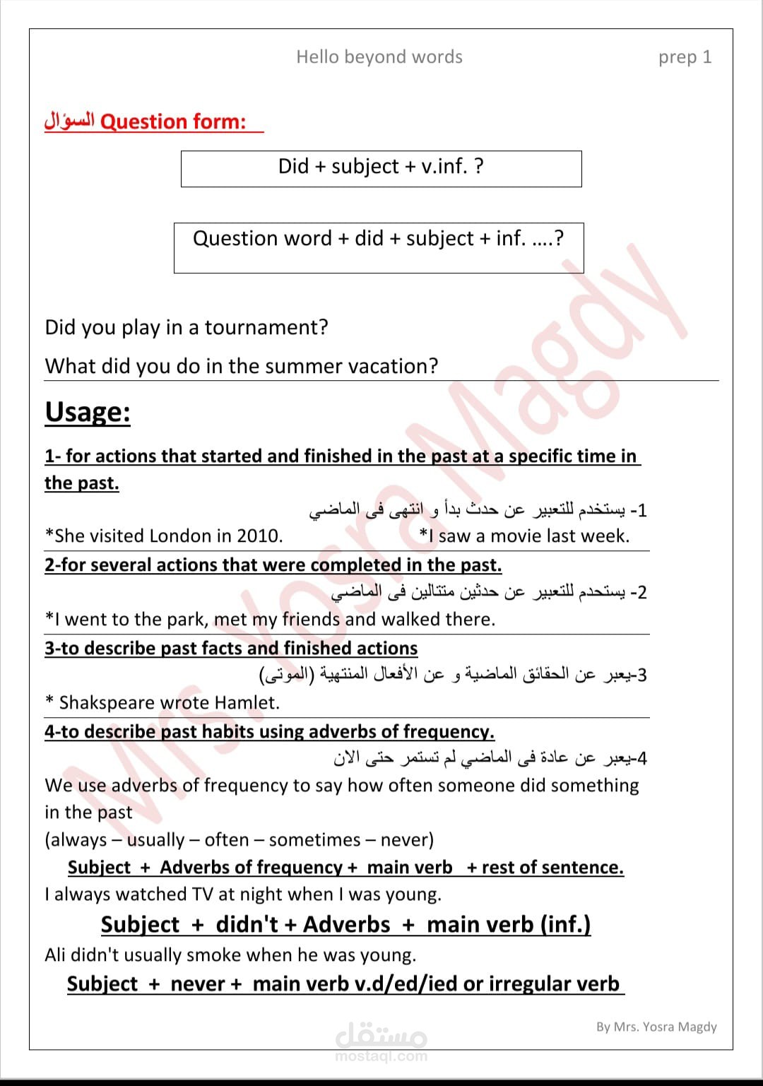 شرح دقيق و مبسط لقواعد اللغة الإنجليزية و حل تدريبات مختلفة