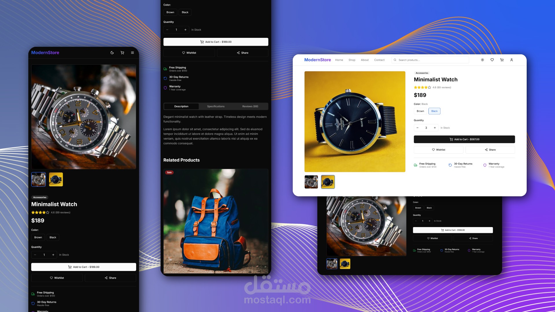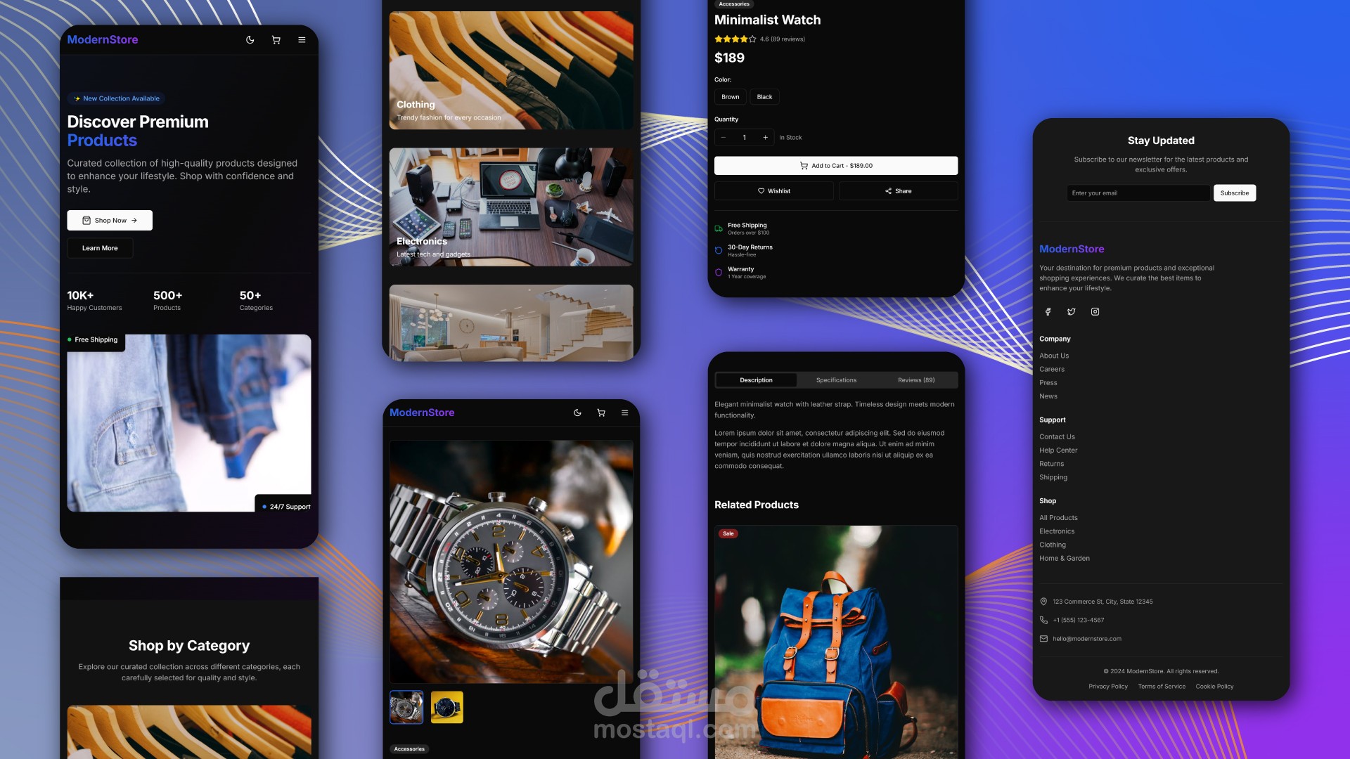 ModernStore هو تطبيق متجر إلكتروني عصري وفاخر، يتميز بتصفح سريع للمنتجات، وإدارة سلة التسوق، وتدفقات الدفع، والوضع المظلم - جميعها مدعومة بتقنية Next.js ومُصممة بـ Tailwind CSS. يوفر تجربة تسوق سلسة بأداء سريع وتصميم جذاب.