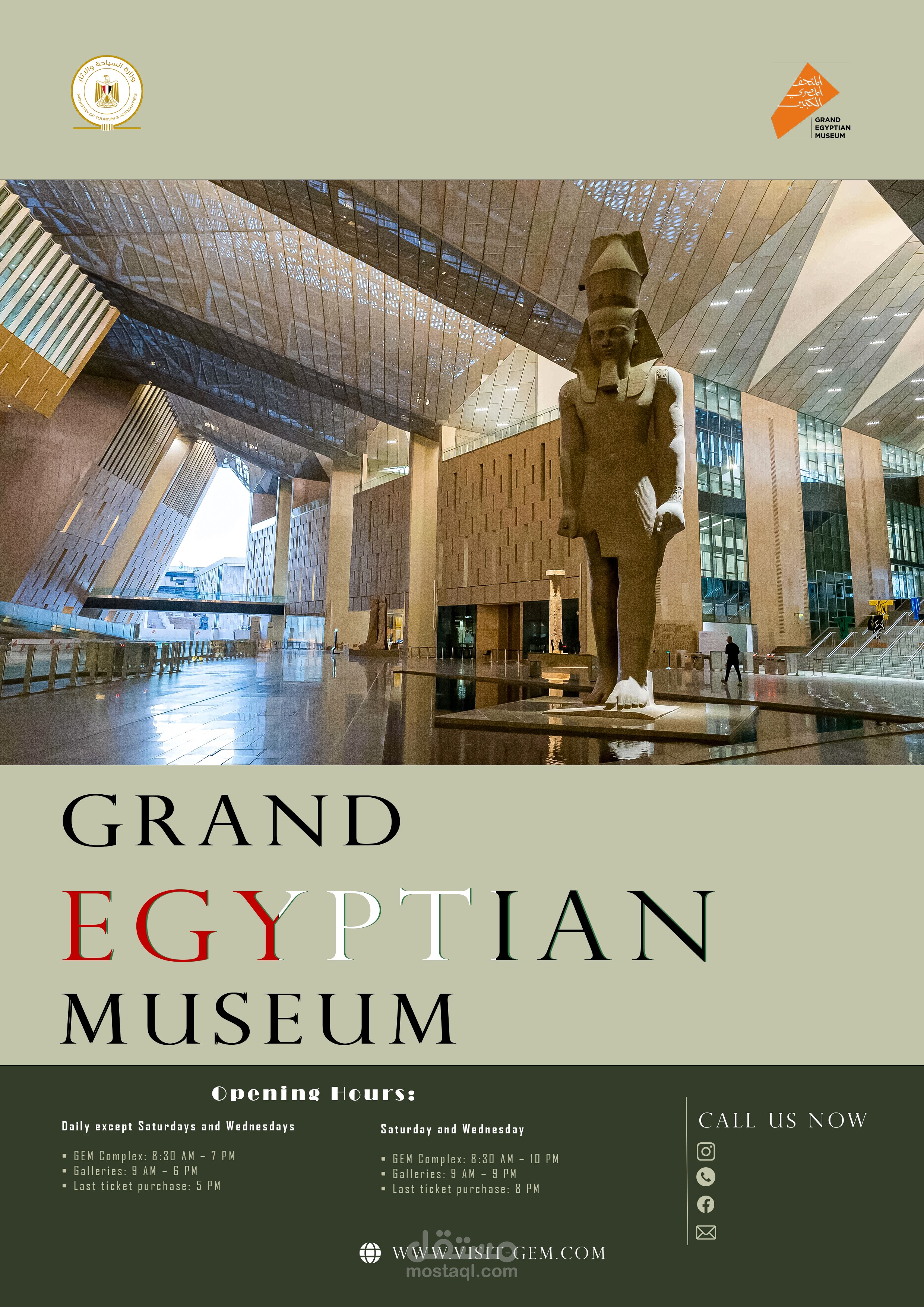 البوستر مصمم ليعطي إحساس إن المتحف مش مجرد مكان أثري، لكنه وجهة عالمية حديثة تجمع بين العراقة والحداثة.