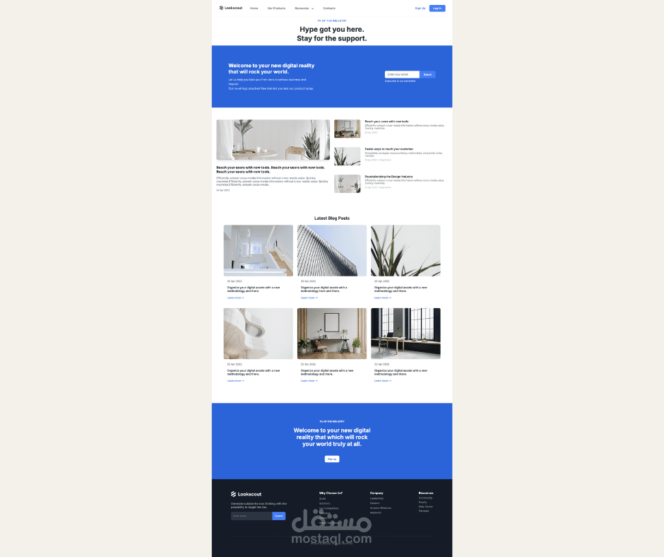 قسم رئيسي (Hero Section) مع صورة خلفية عالية الجودة، عنوان تسويقي واضح، وزر بارز (Call to Action) "Join Today".