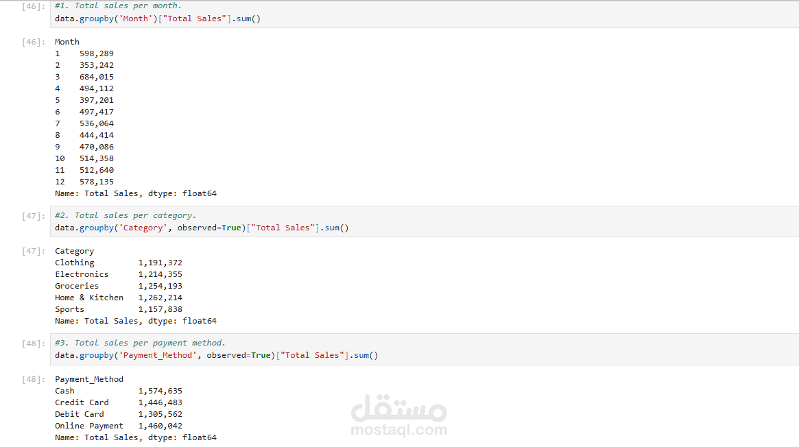3. تحليل مواسم المبيعات لتحديد الشهور ذات الذروة والضعف.