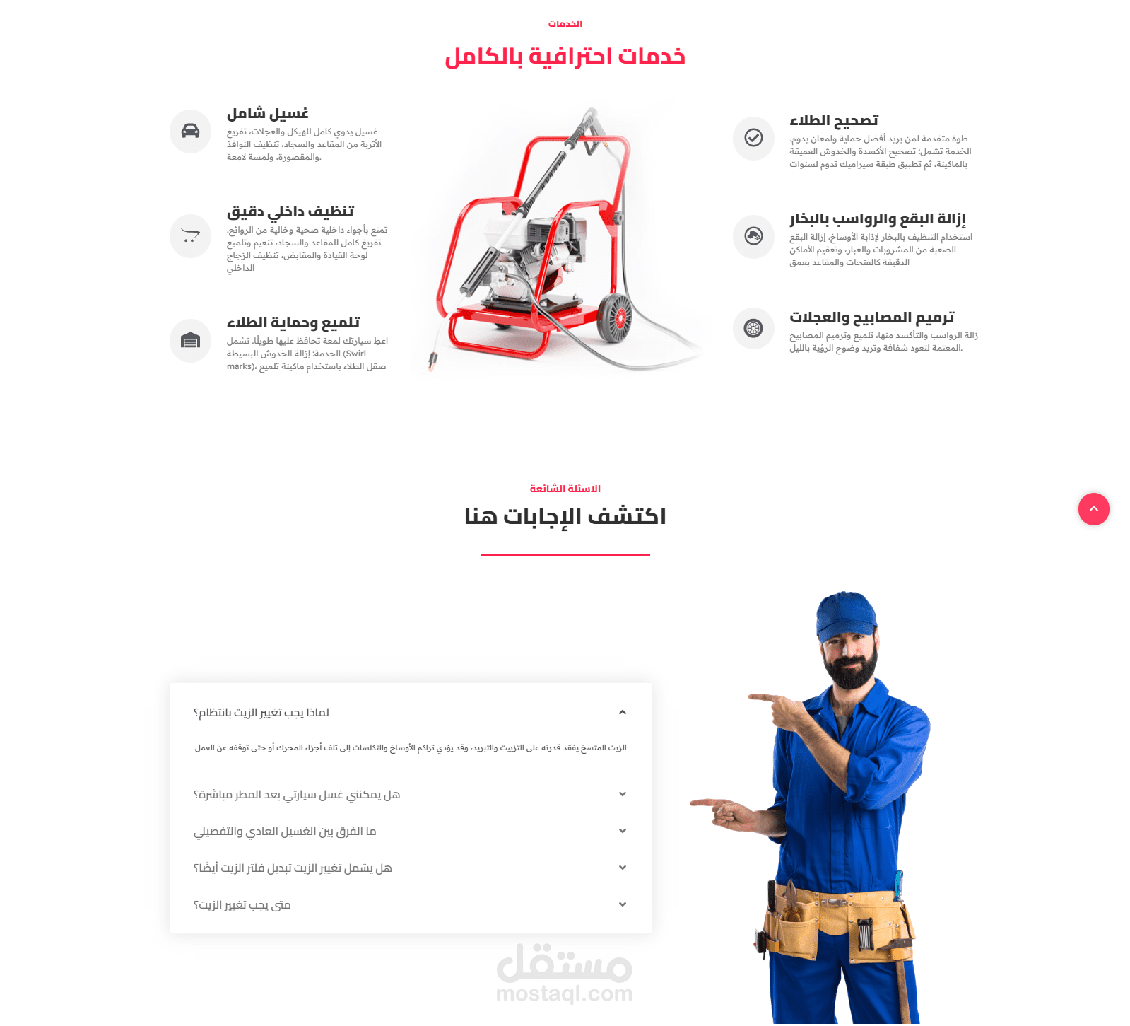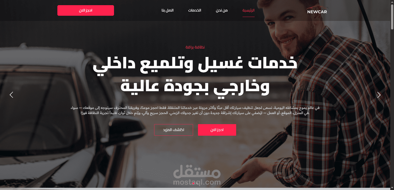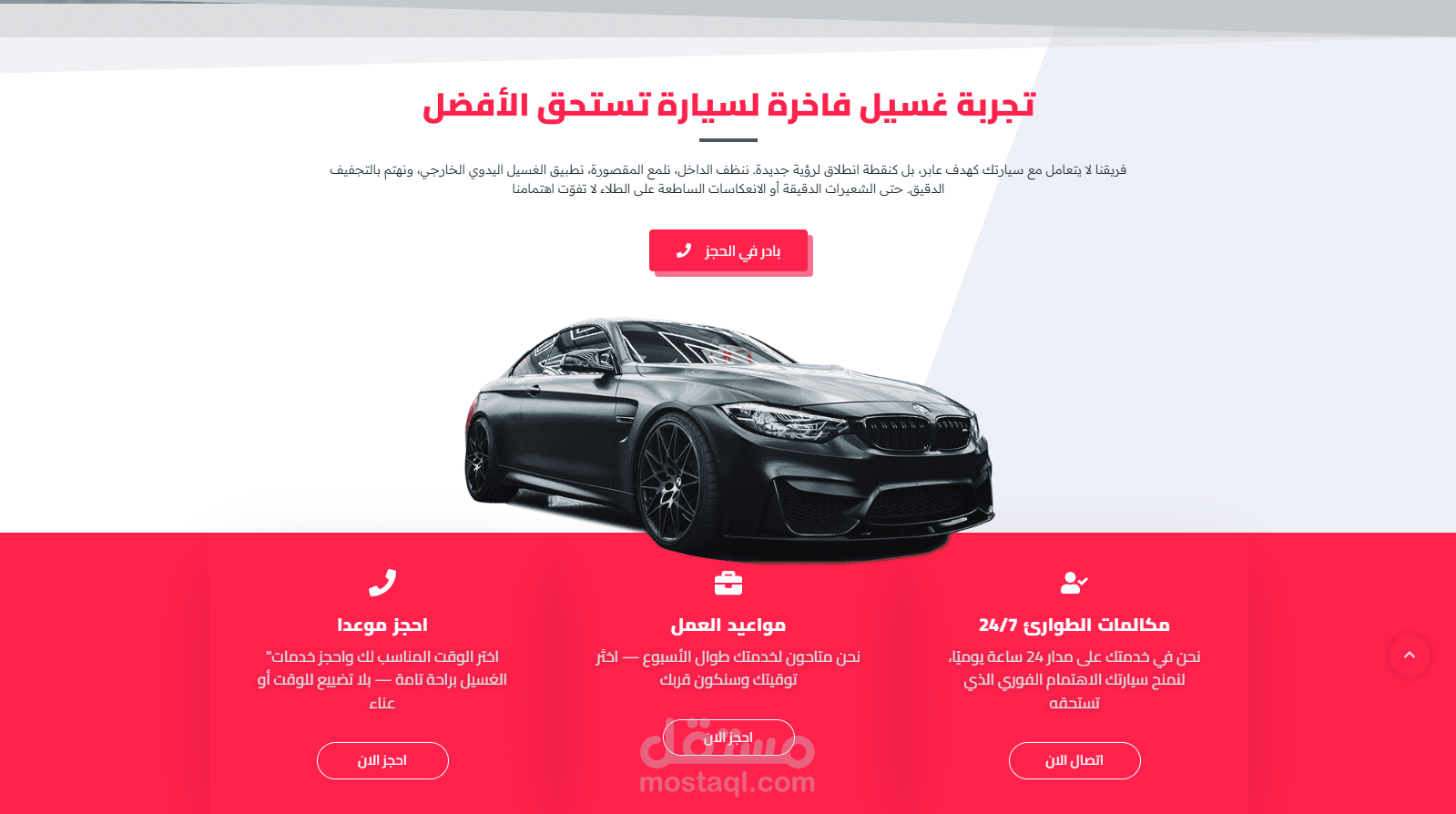 تم تصميم الموقع باستخدام ووردبريس مع Elementor المجاني، خصيصًا لحجز خدمات غسيل السيارات والعناية بها (مثل: الغسيل اليدوي أو الخارجي، تلميع، تغيير الزيوت، وغيرها من الخدمات المكملة).