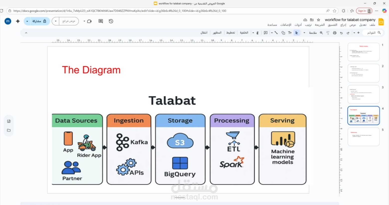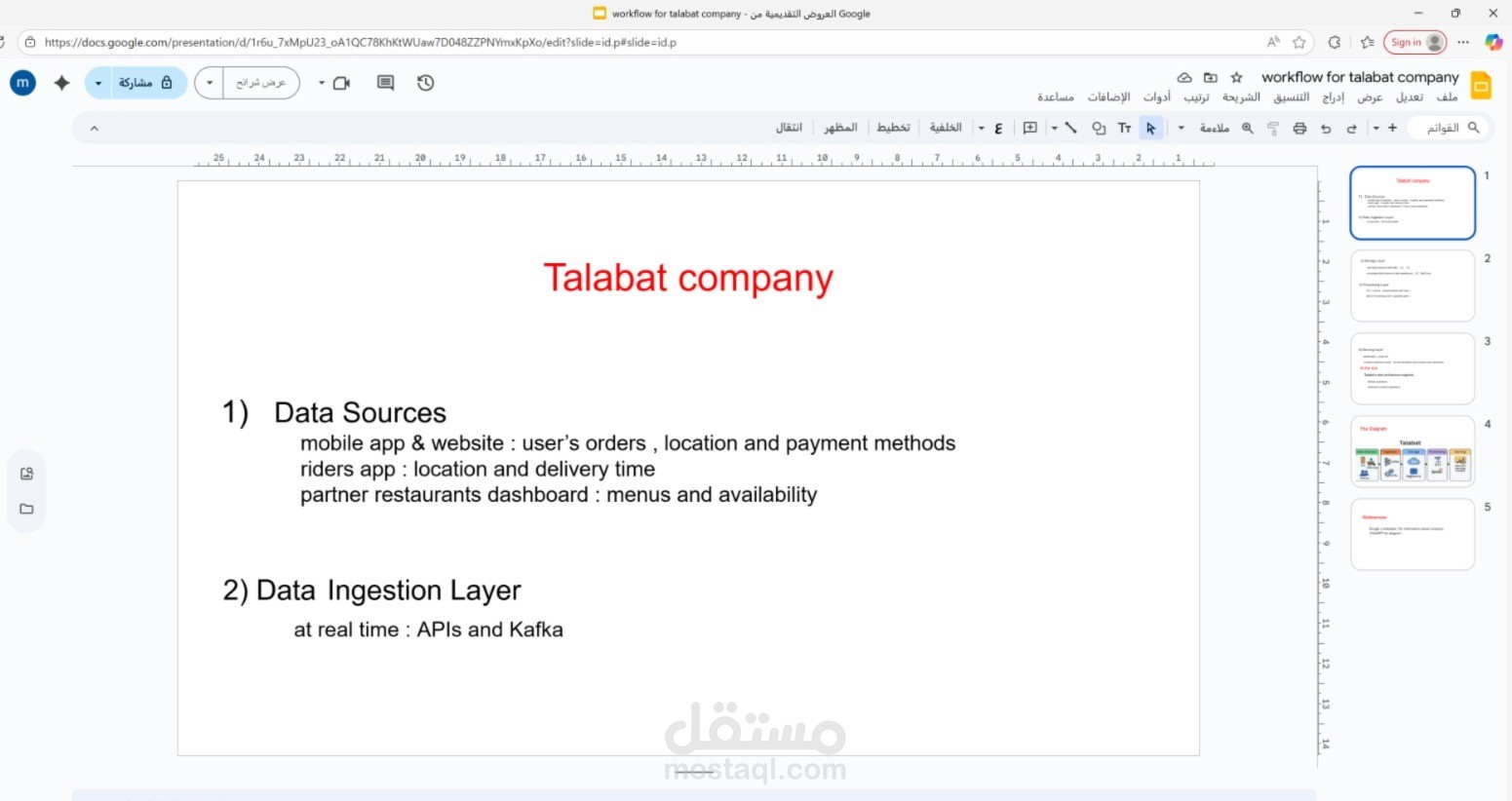 الهدف من العرض تقديم شرح بسيط عن هيكيلة البيانات لشركة Talabat لمساعده الناس معرفة المزيد من المعلومات عن الشركة و عن هيكيلة البيانات .