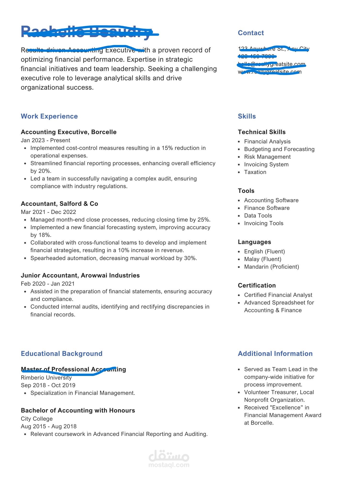 مرحبا معاكم كاتبة محتوى وأُتقن إعداد وتنسيق السير الذاتية بشكل احترافي. أنجزت أكثر من عدة سير ذاتية لشباب وباحثين عن عمل سابقًا، وأحرص دائمًا على أن تكون منظمة وواضحة وتبرز نقاط القوة.