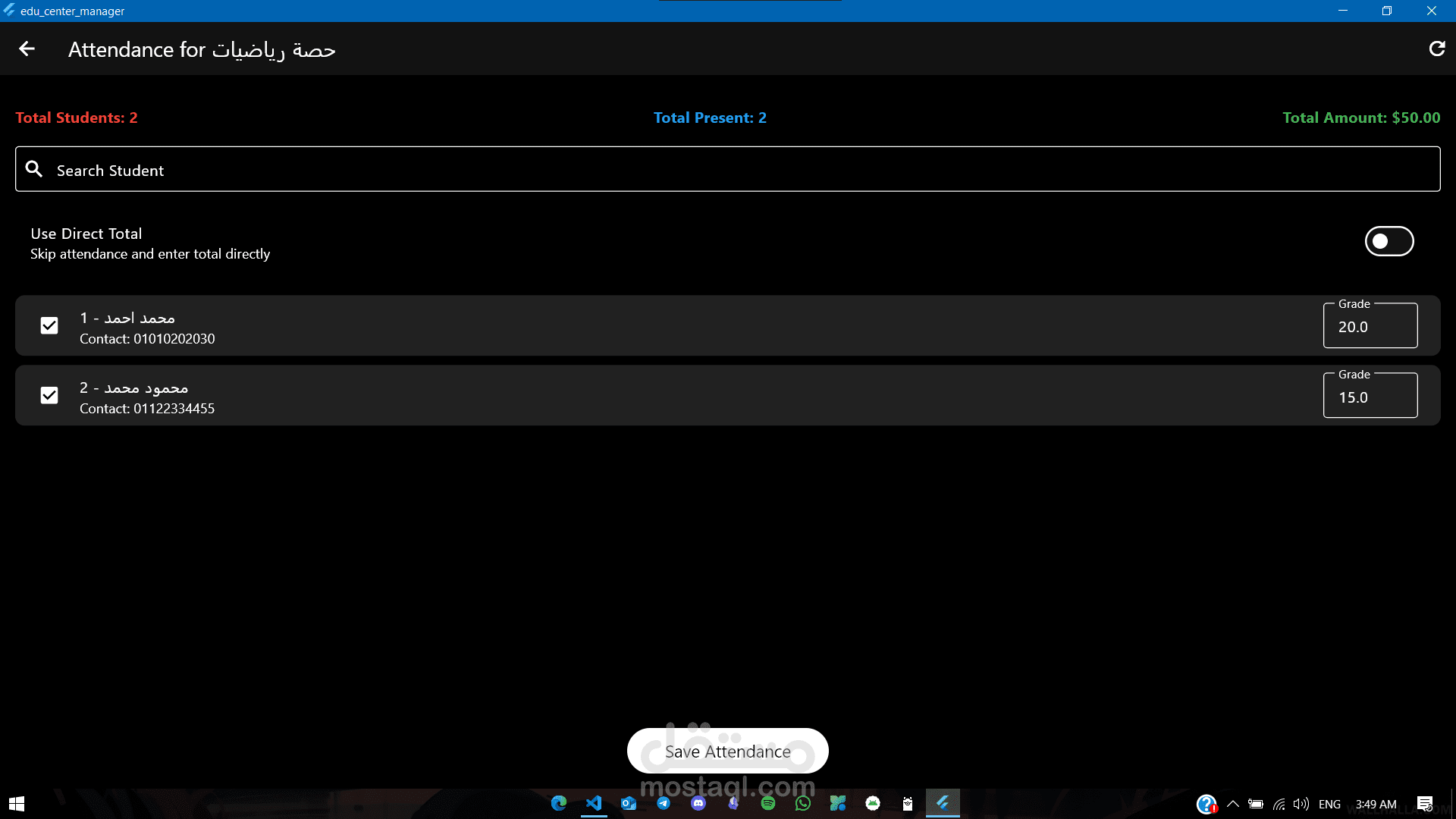 إدارة الطلاب: تسجيل، تعديل، وحذف الطلاب مع تتبع المراحل الدراسية.