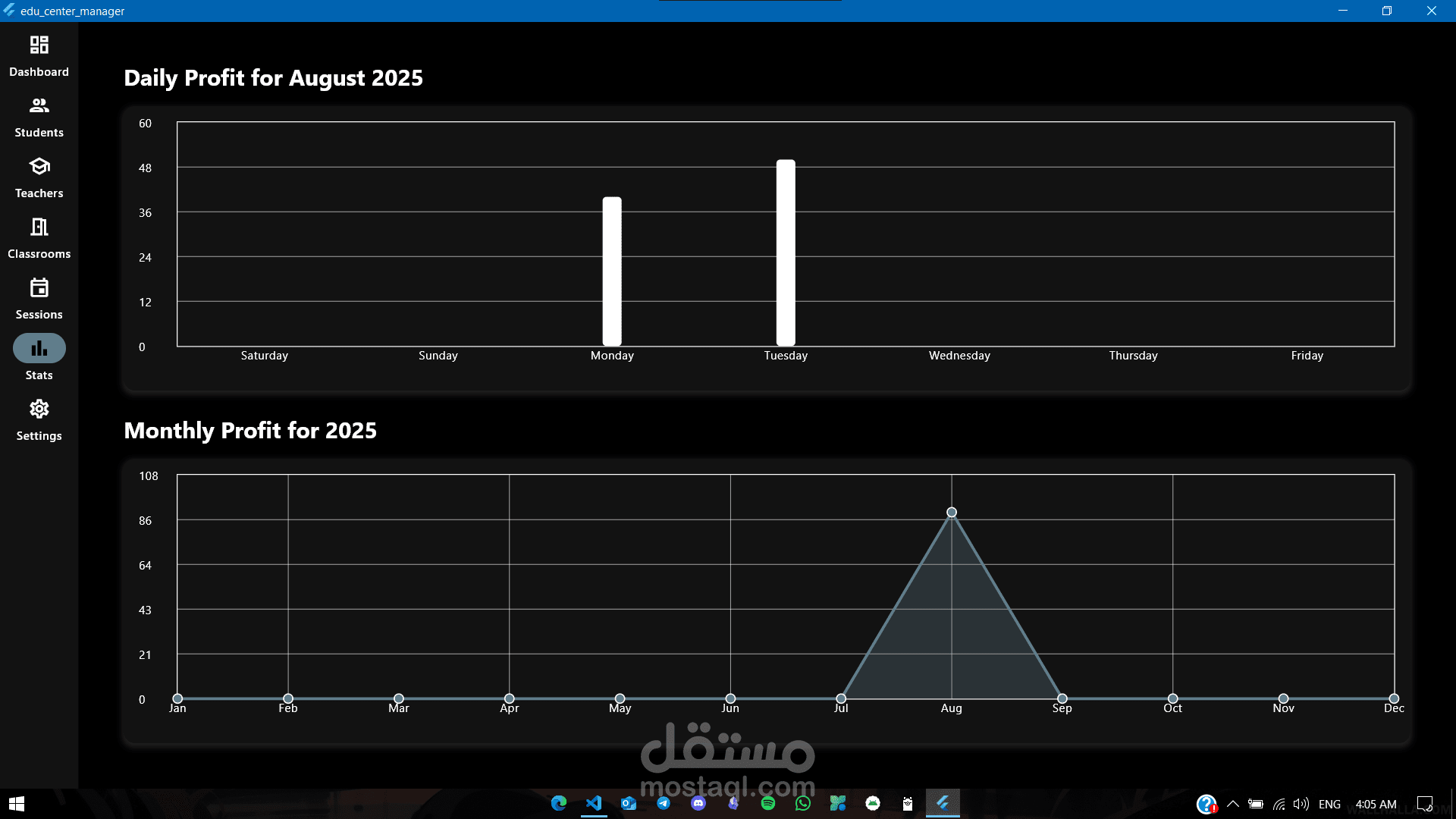 لوحة إحصائيات: رسوم بيانية وتقارير لمتابعة الإيرادات والمصروفات.