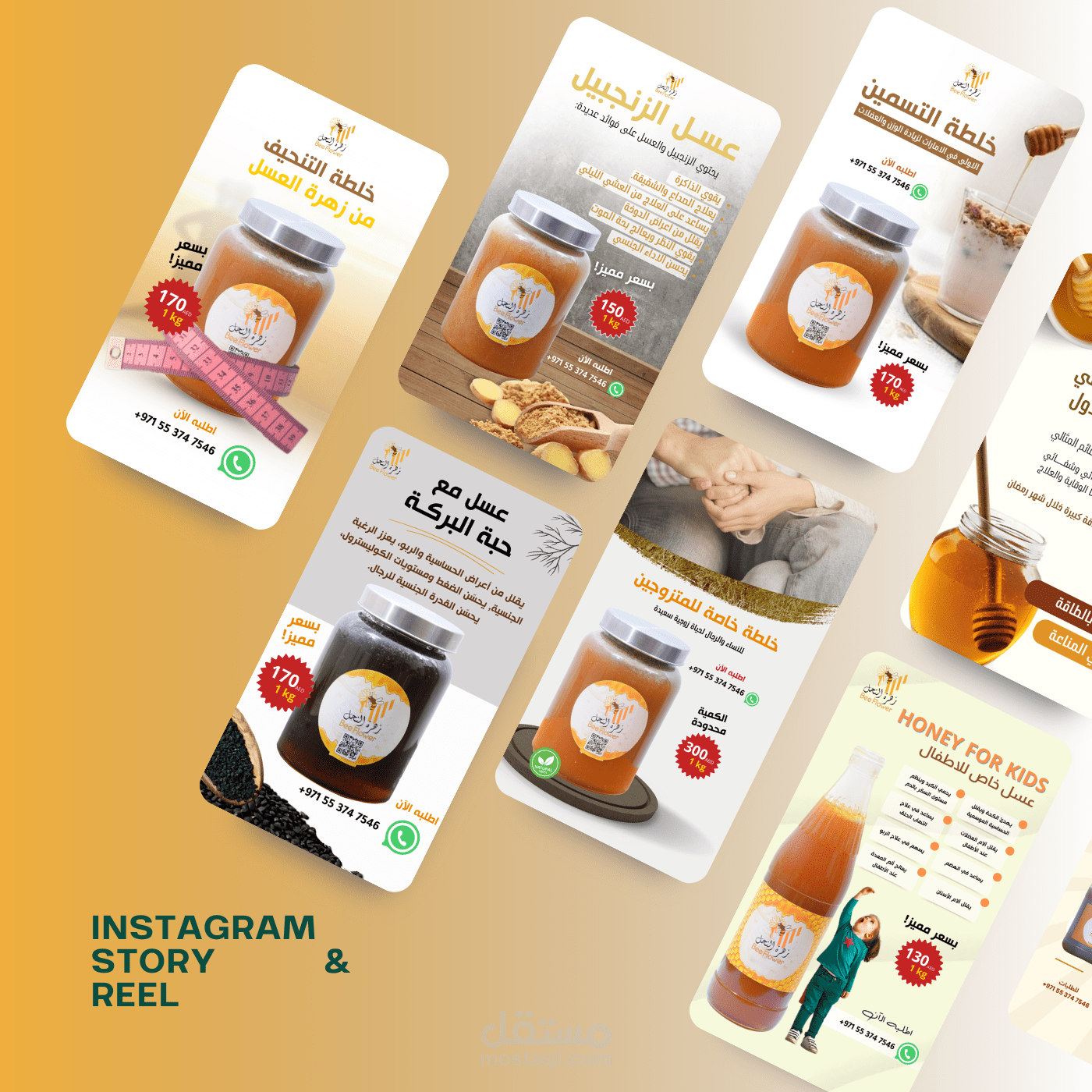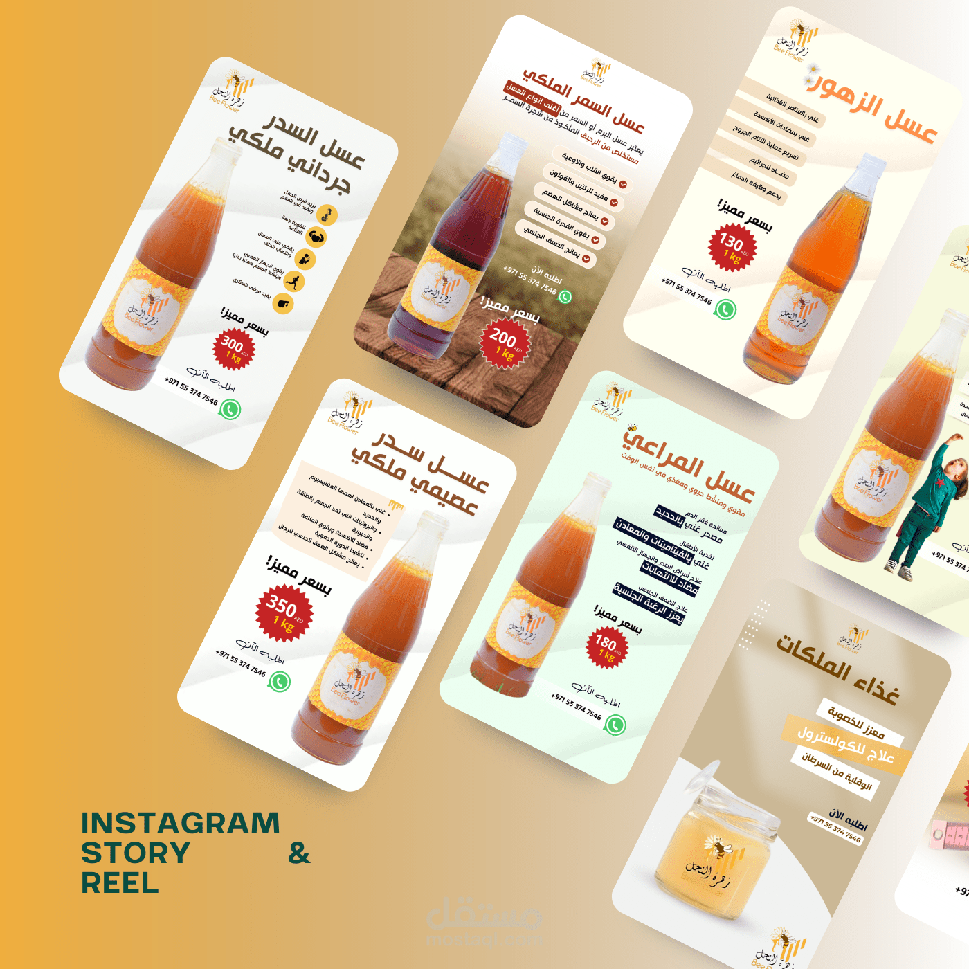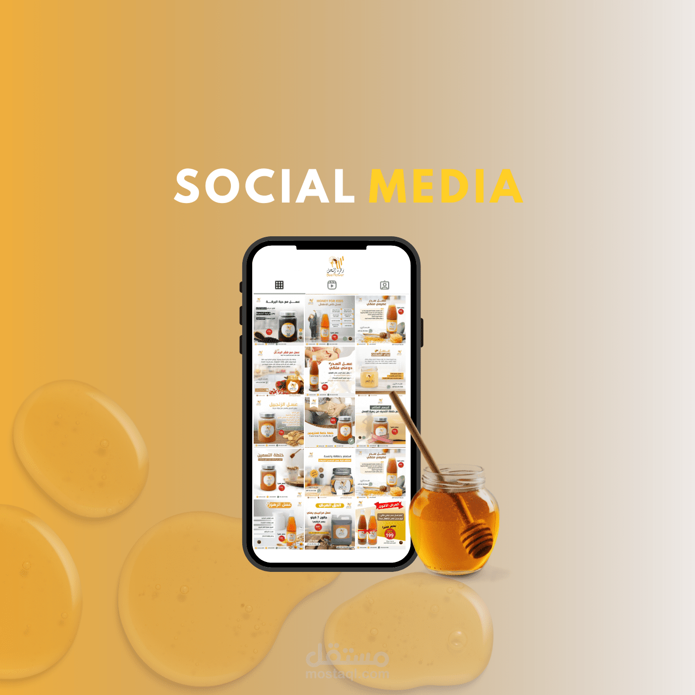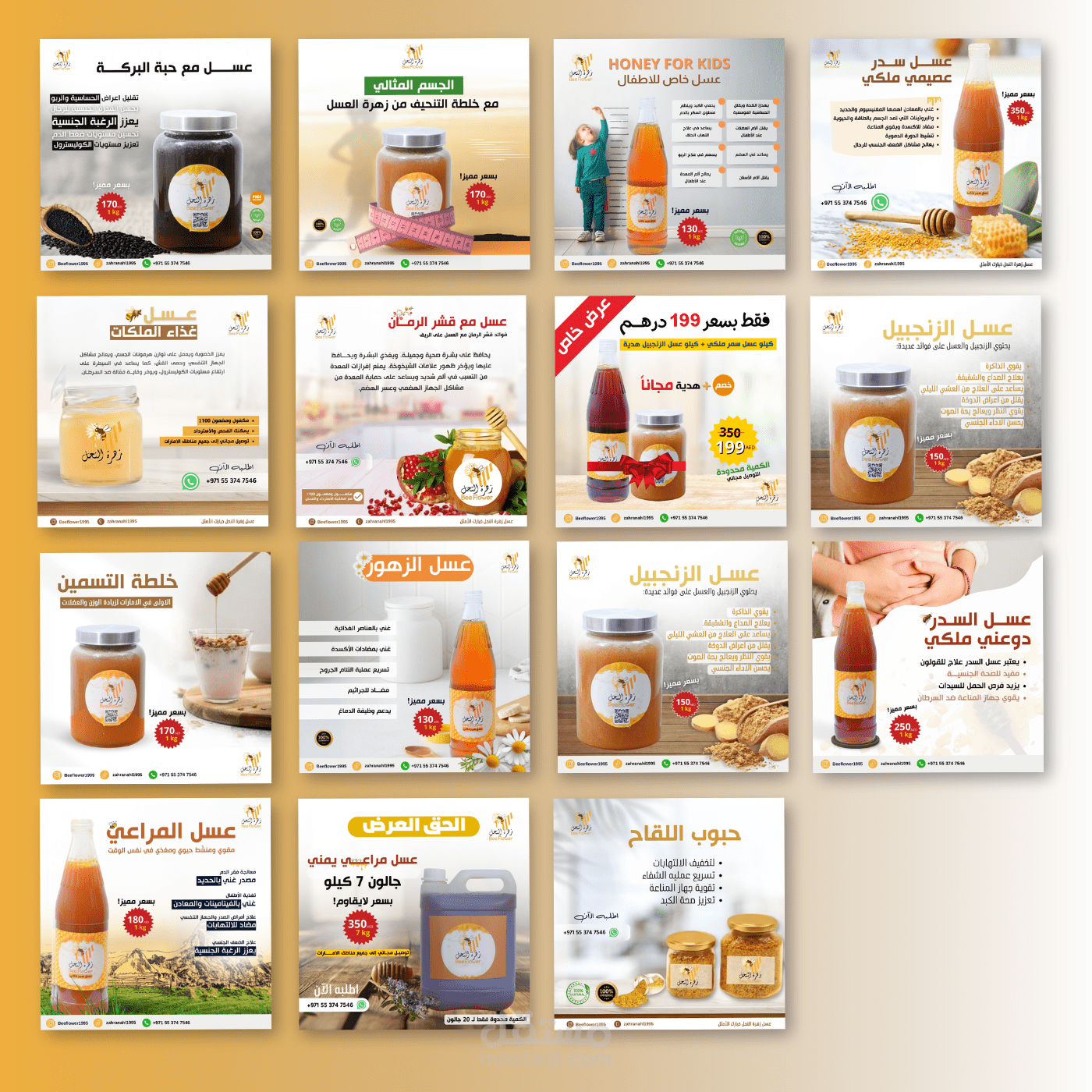 تصاميم سوشيال ميديا إبداعية لمشروع "Bee Flower Honey"، تعكس هوية العلامة التجارية وتبرز جودة منتجات العسل الطبيعي، مع بوستات أنيقة ومتناسقة لتعزيز تفاعل الجمهور وزيادة الوعي بالمنتج.