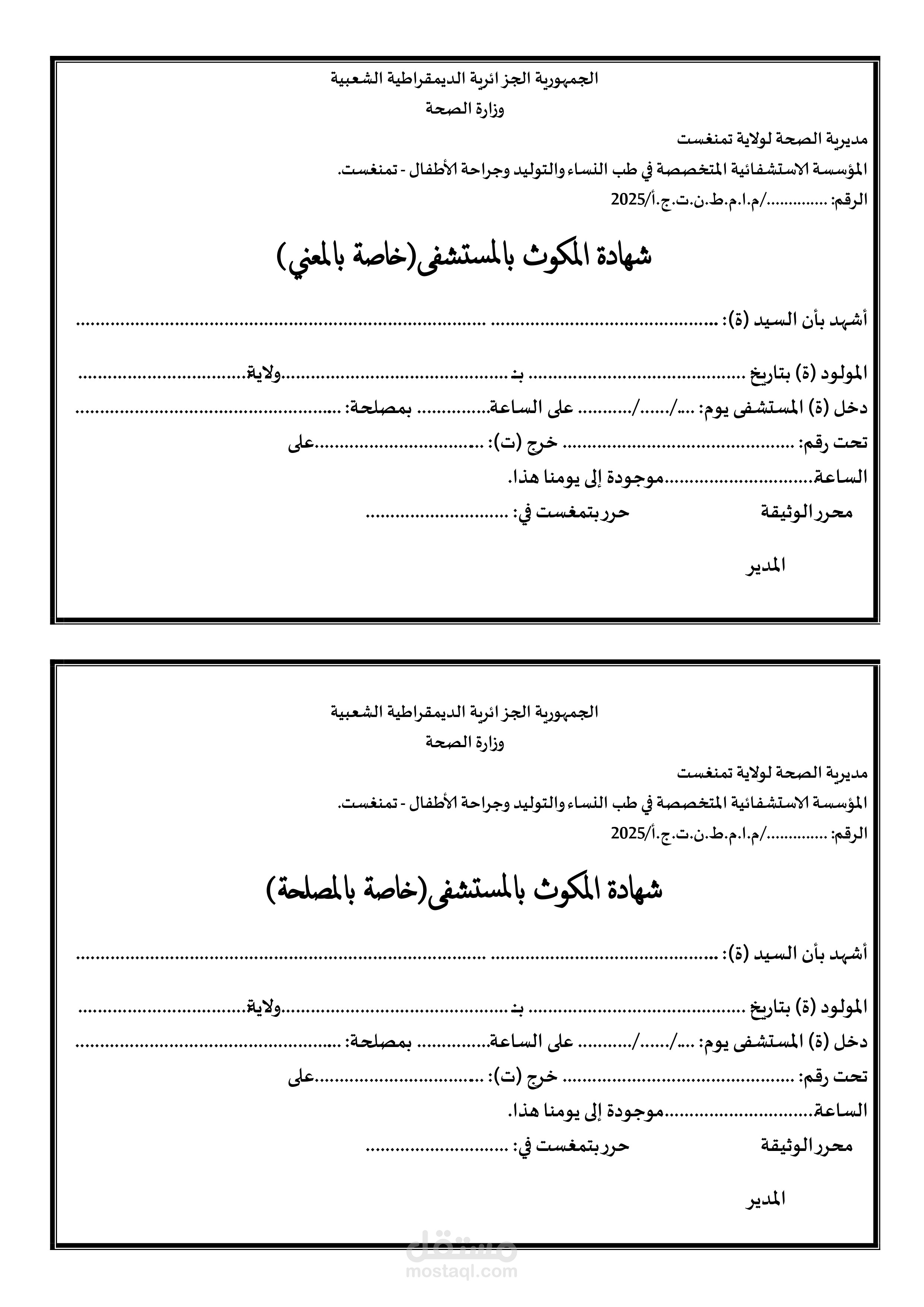 هذه بعض النماذج من مستندات رسمية وتقارير خاصة بالمستشفى الذي أعمل به، أنشأتها باستخدام Word مع دقة واحترافية في التنسيق.