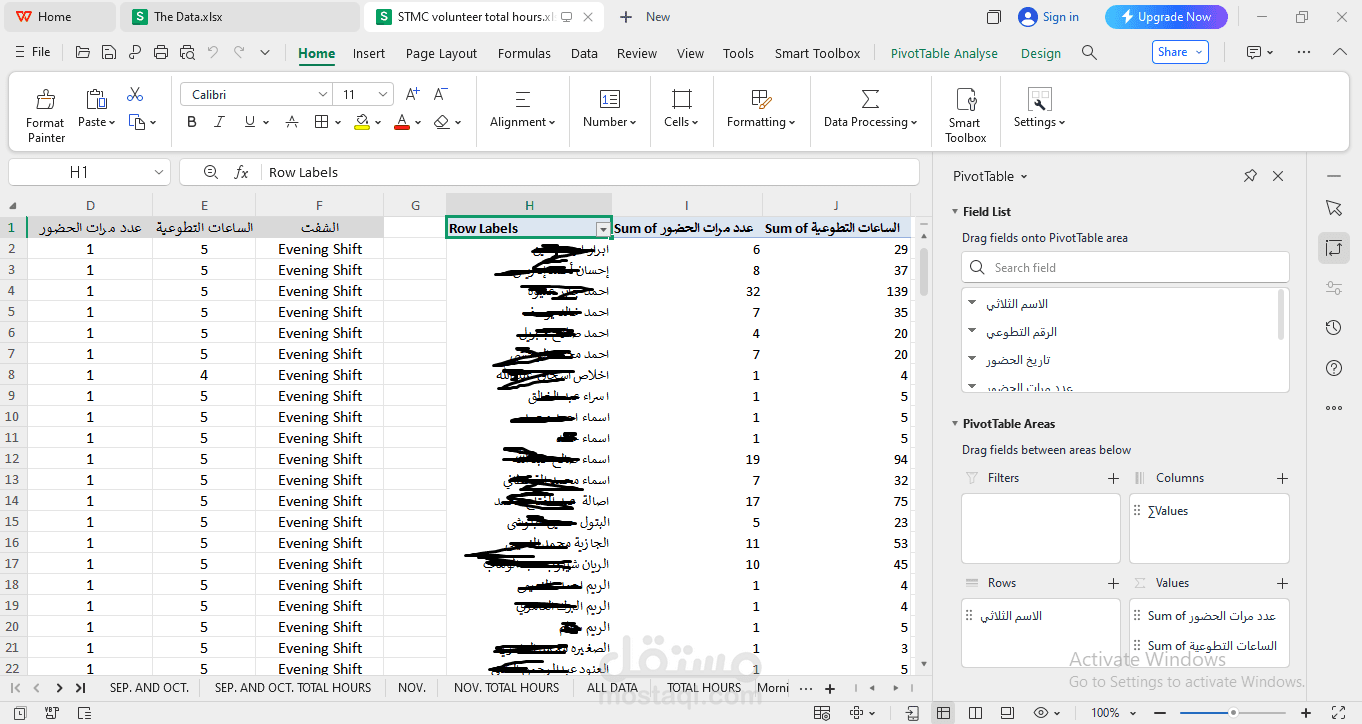 هذا المشروع يوضح مهاراتي في إدخال البيانات، تحليلها، إعداد التقارير، واستخدام الأدوات الرقمية لتنظيم العمل التطوعي.
