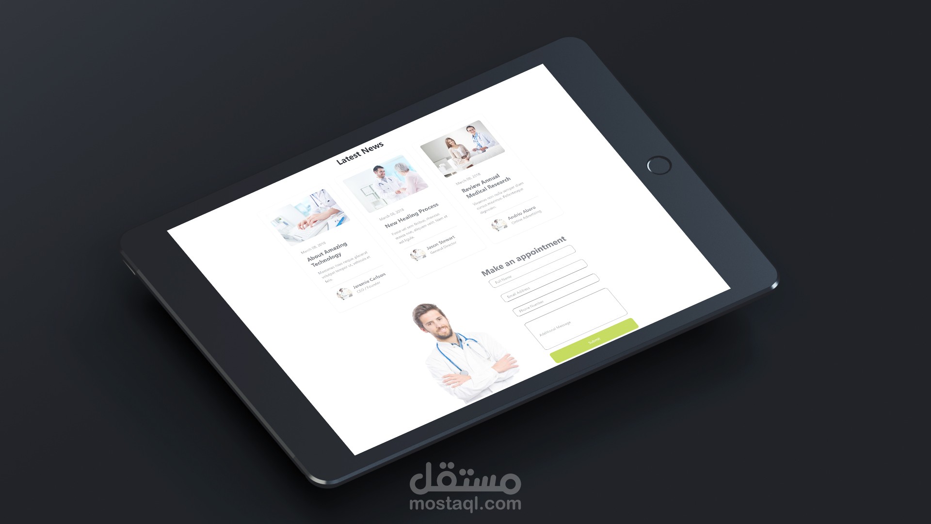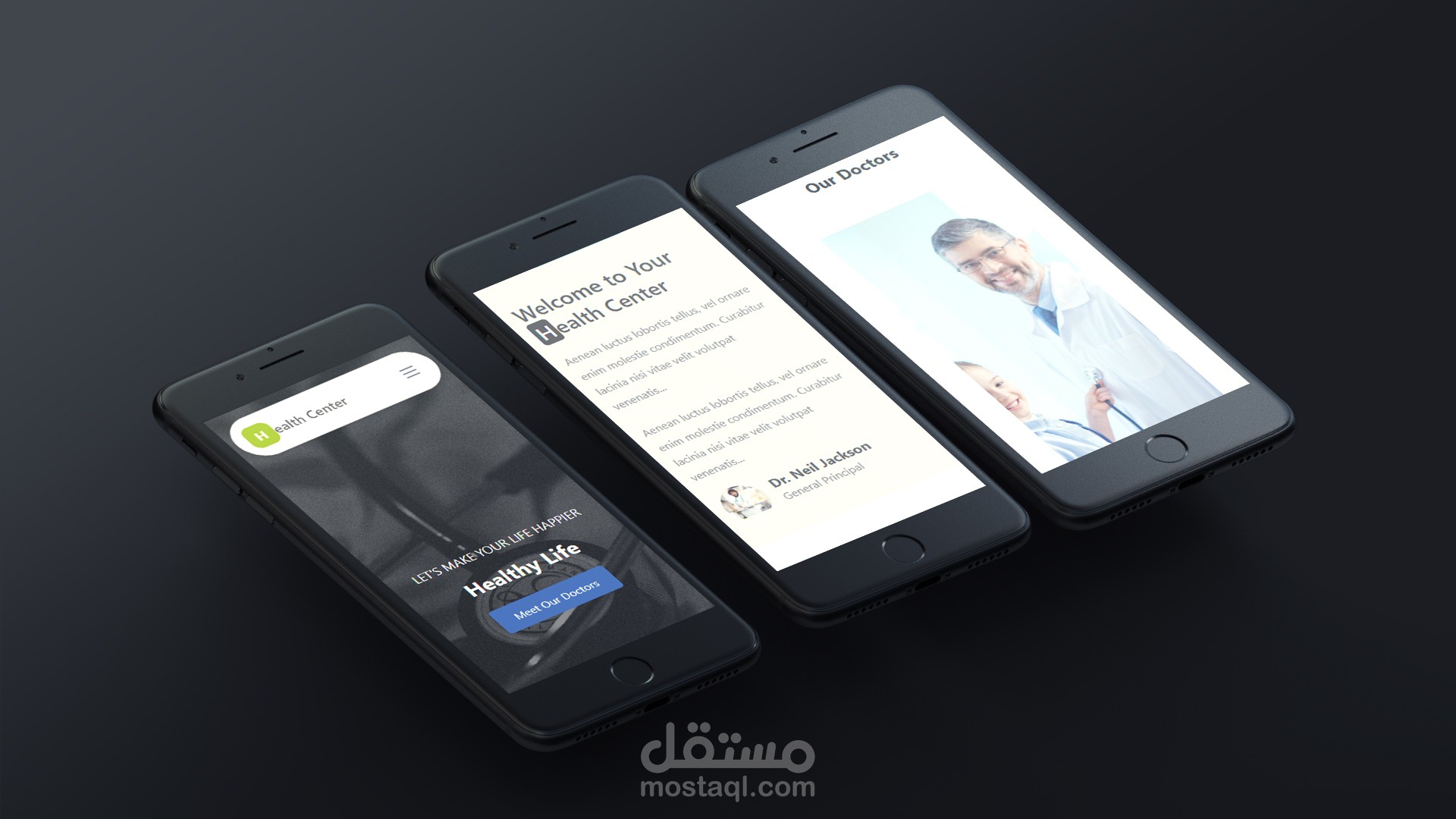 تم تنفيذ صفحة هبوط احترافية لمركز صحي، تتضمن: قسم رئيسي (Hero) جذاب، تعريف بالمركز، عرض الأطباء مع صور وتفاصيل، قسم آخر الأخبار، نموذج حجز موعد، وخريطة موقع. التصميم متجاوب وسهل الاستخدام مع تنسيق ألوان وخطوط مريحة تعزز ثقة المستخدم.