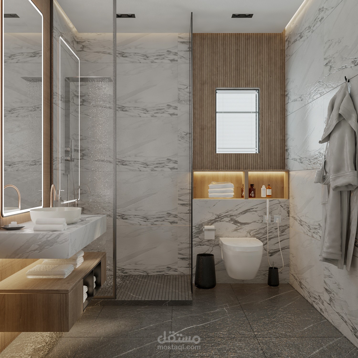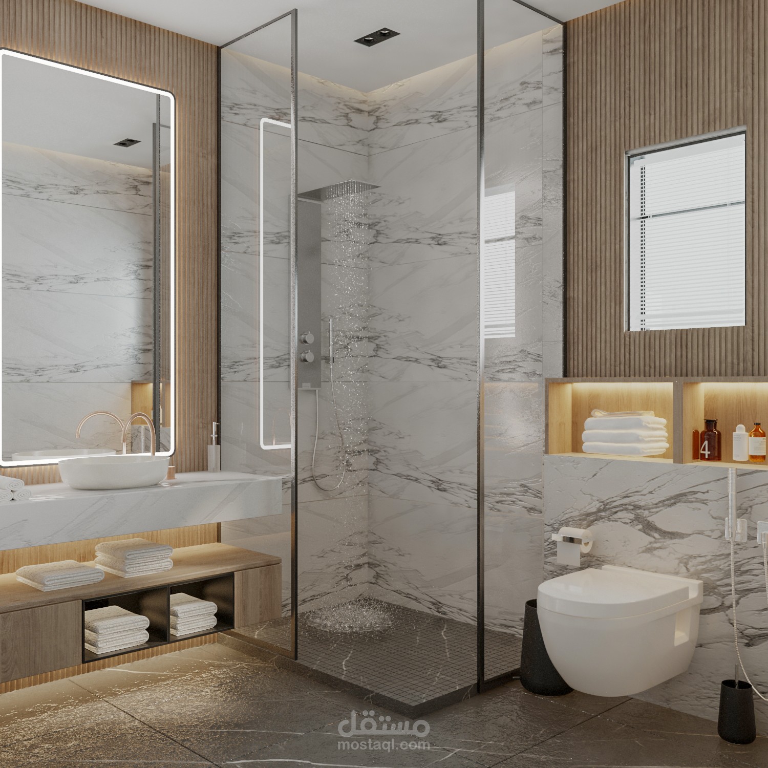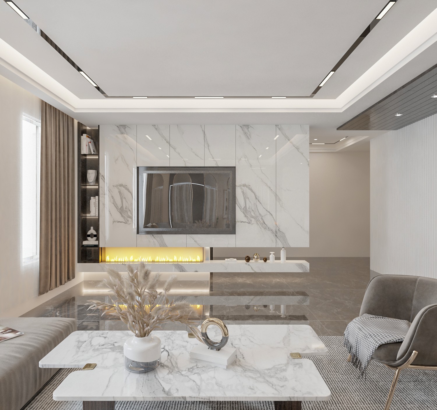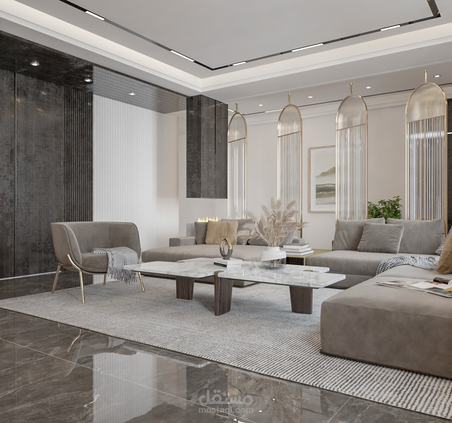 تصميم منطقة معيشة و مطبخ مفتوح بمدينة جدة على الطراز الحديث