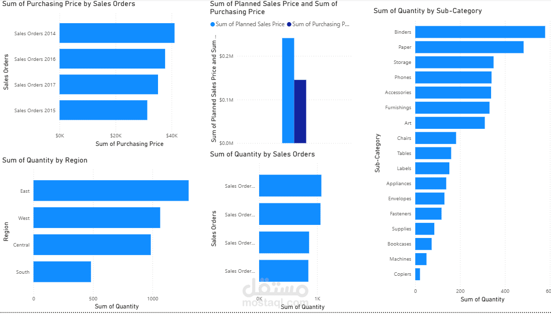 "قمت بإعداد تحليل بيانات تفاعلي باستخدام Power BI لعرض كمية المبيعات حسب المنطقة، المنتج، الفئة، الفرع، ومندوب المبيعات. التقرير ساعد في إبراز أعلى المنتجات والمناطق مبيعًا، مع توضيح إجمالي الوحدات المباعة (216K). تم جمع البيانات، تنظيفها وتحليلها باستخدام Power Query، ثم تصميم لوحة معلومات سهلة الفهم لدعم اتخاذ القرار."