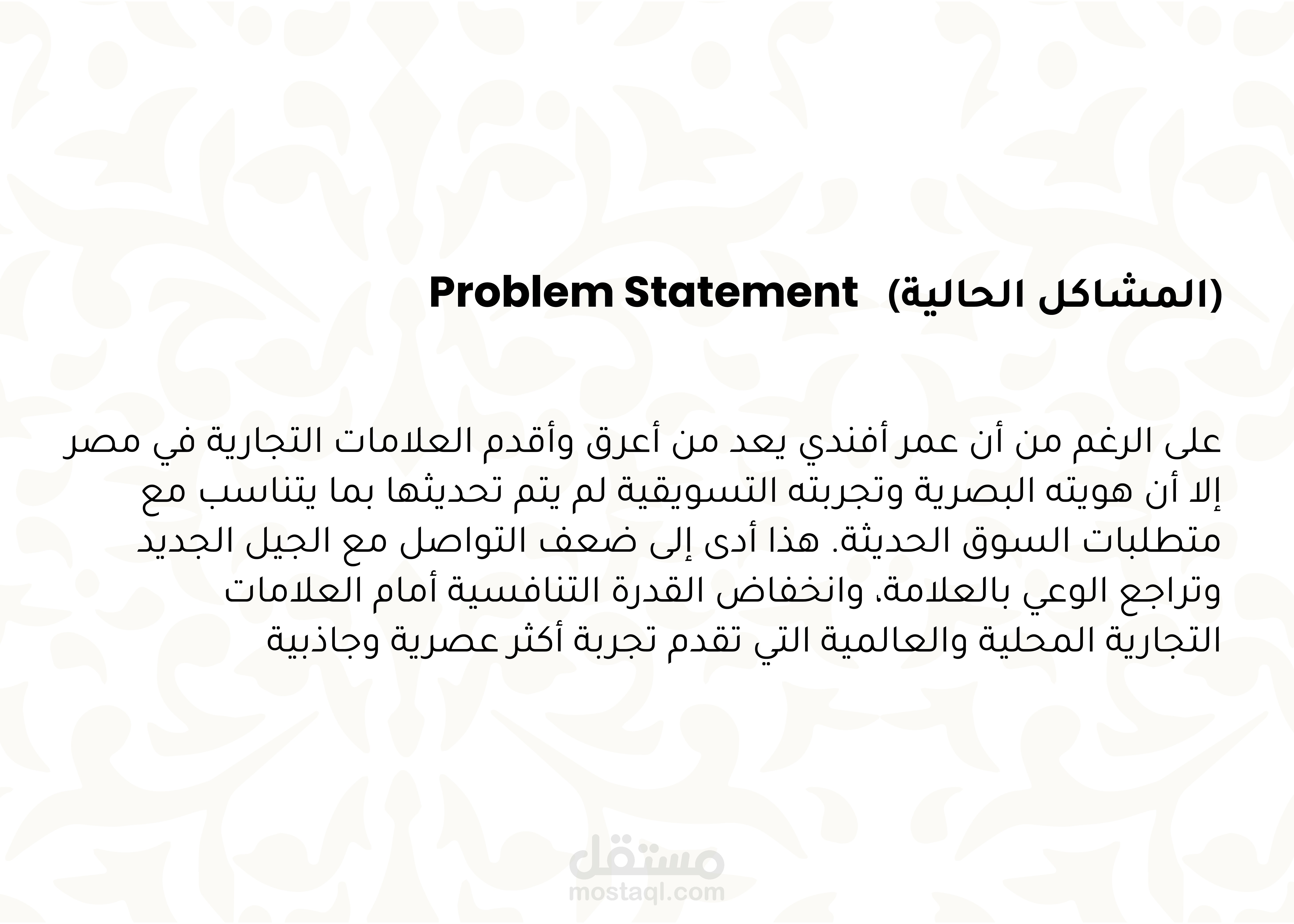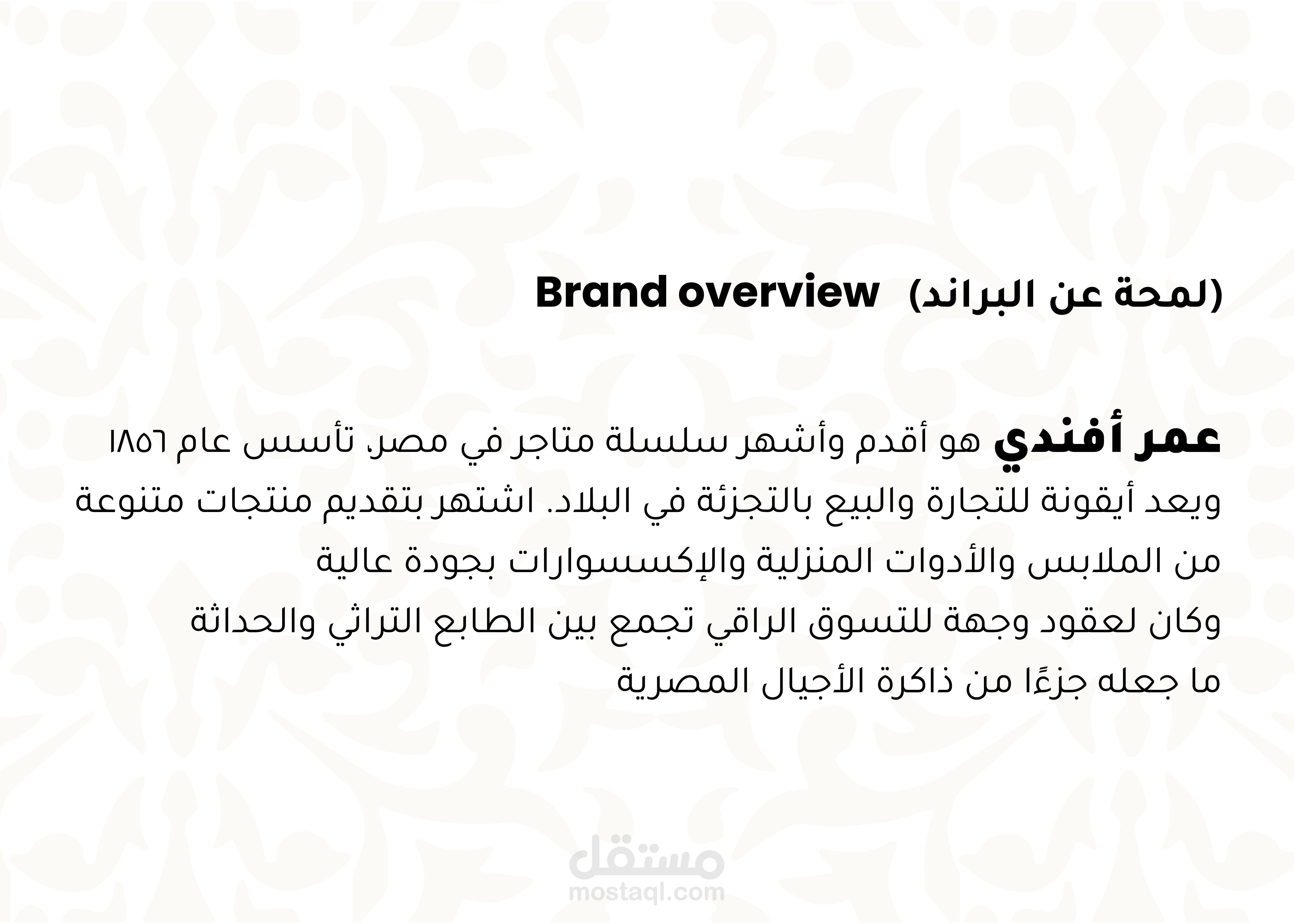 مشروع إعادة تصميم الهوية البصرية لعمر أفندي، أحد أقدم وأعرق المتاجر المصرية منذ عام 1856.