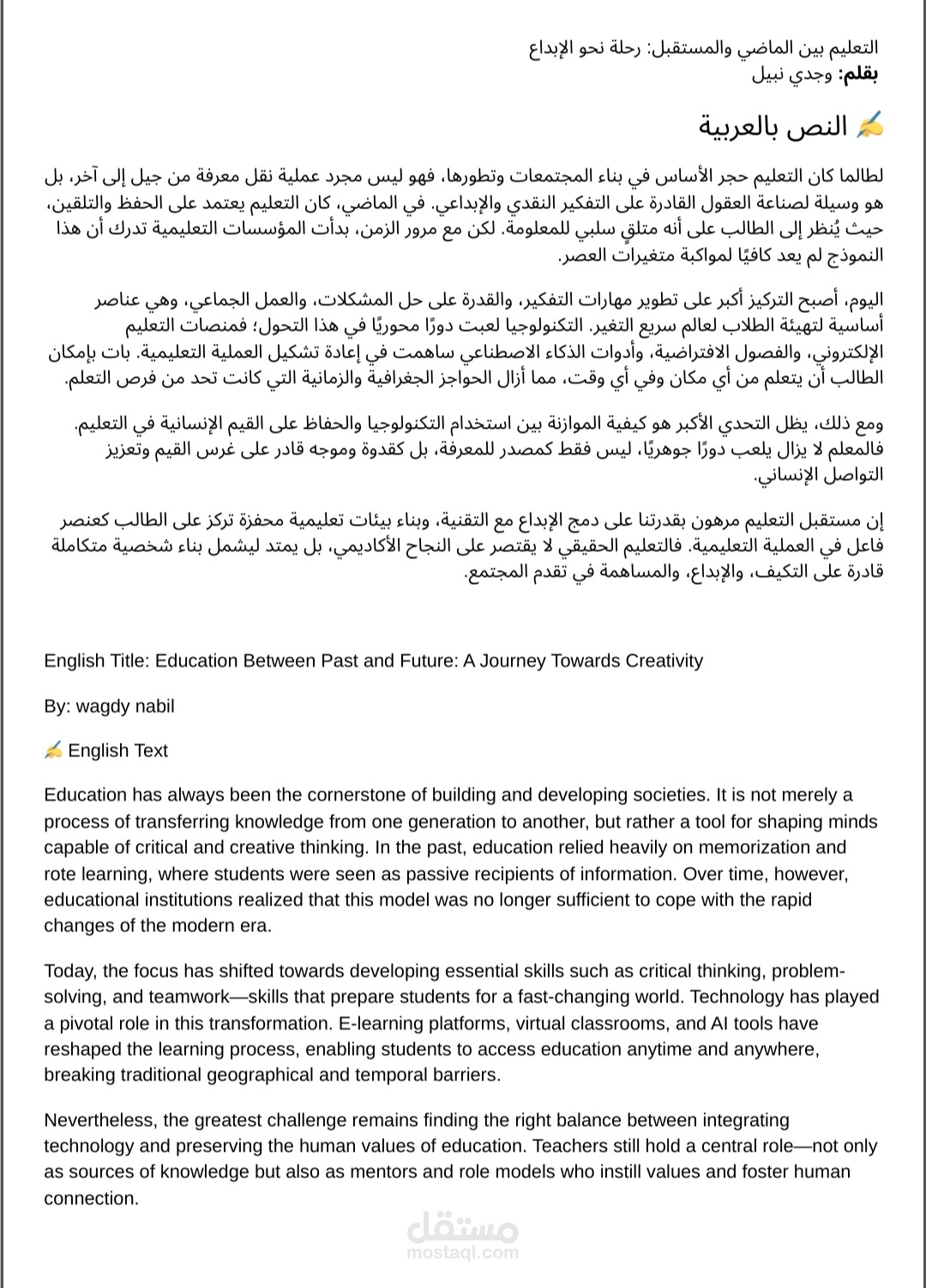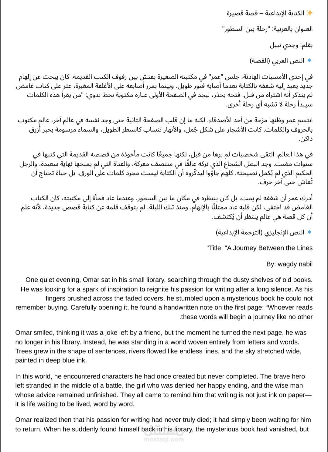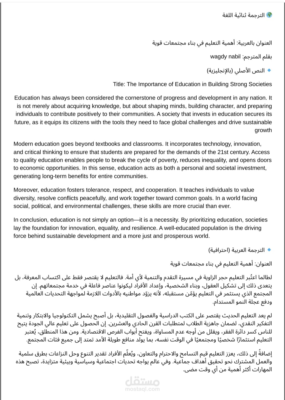 أنجزت ترجمة مقالات أكاديمية وتقارير تجارية من اللغة الإنجليزية إلى العربية والعكس، مع مراعاة الدقة في المعنى والحفاظ على الأسلوب الاحترافي للنصوص الأصلية.