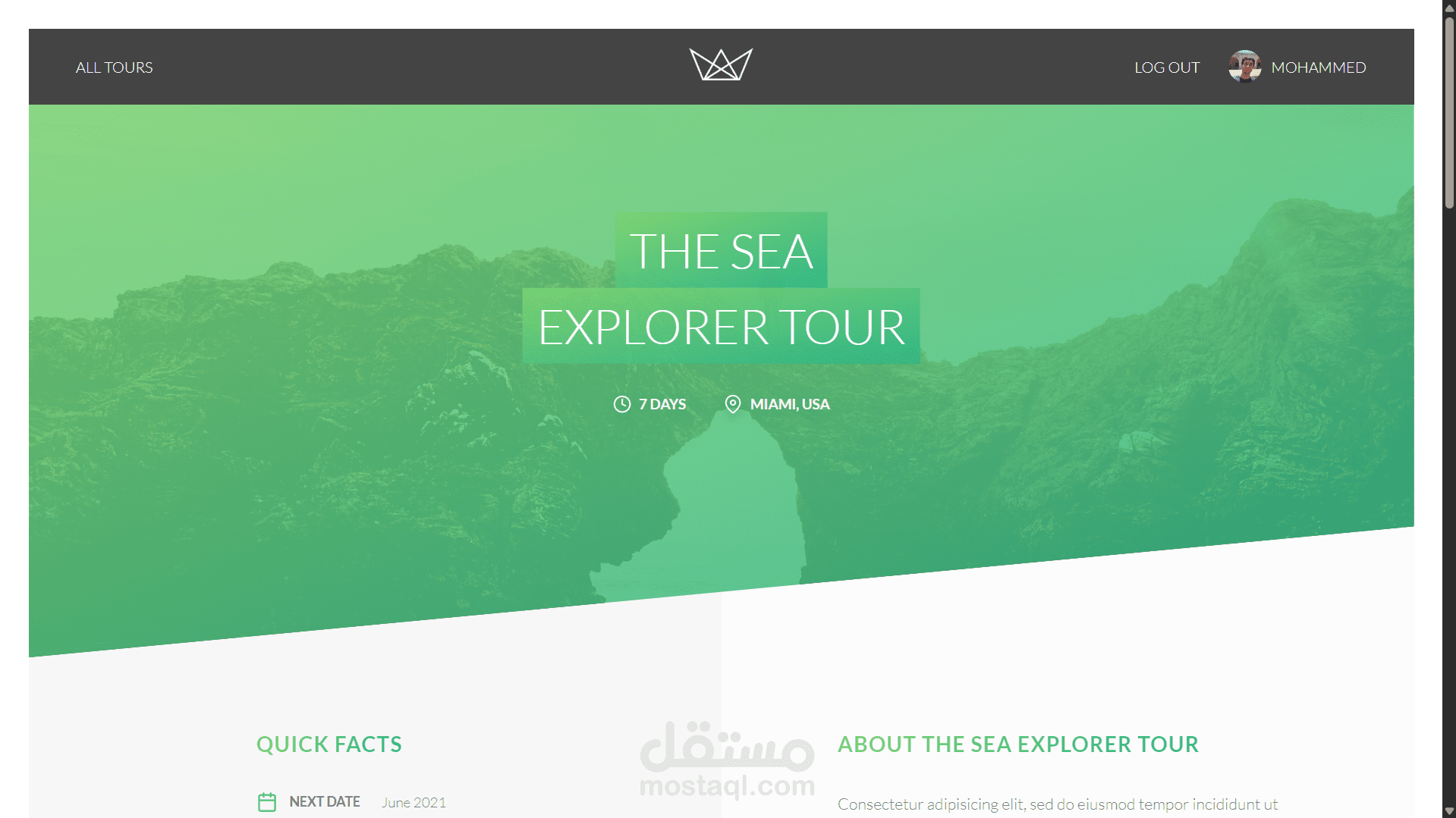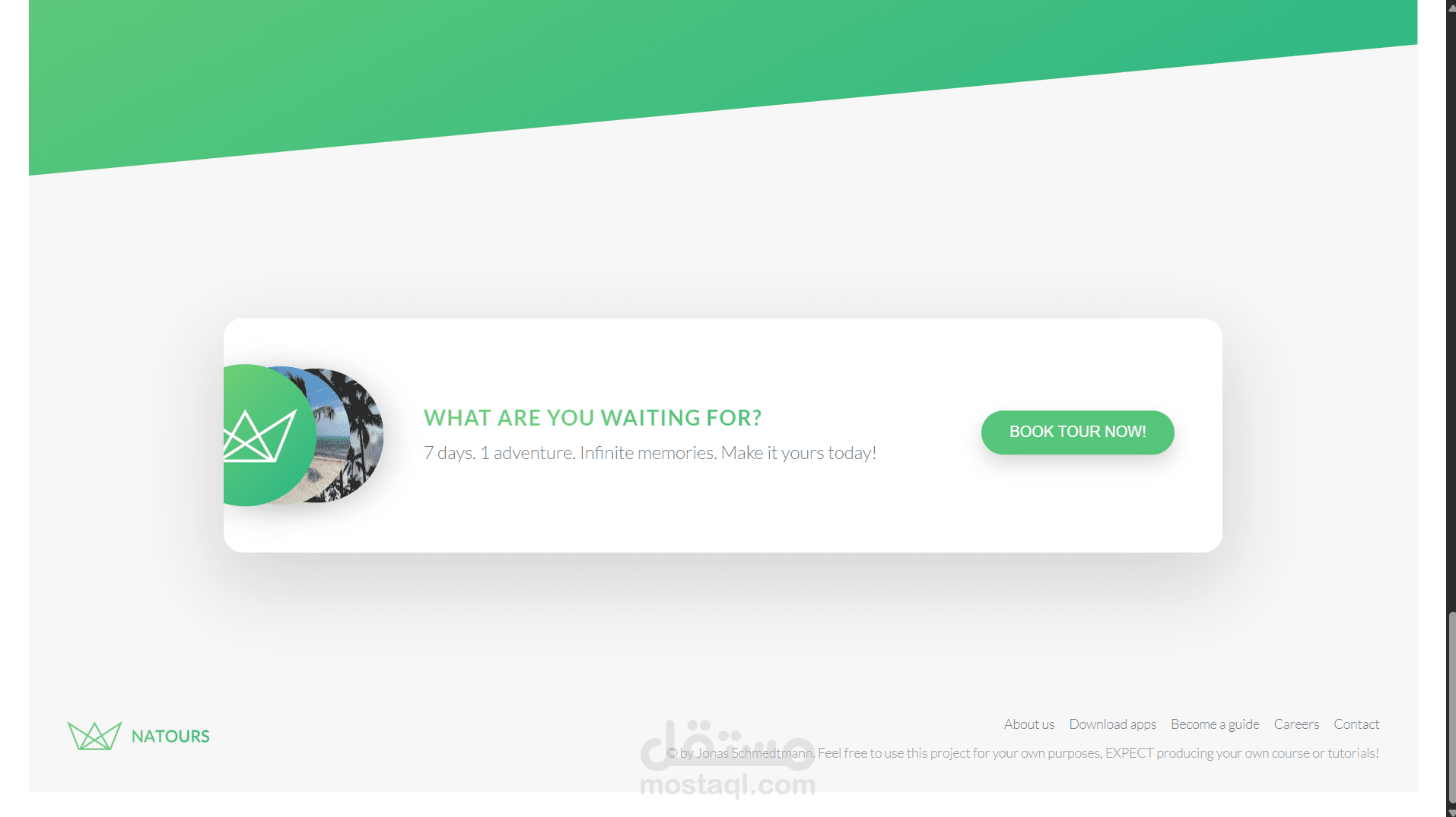 مشروع Backend كامل باسم Natours، وهو API لحجز الجولات السياحية.