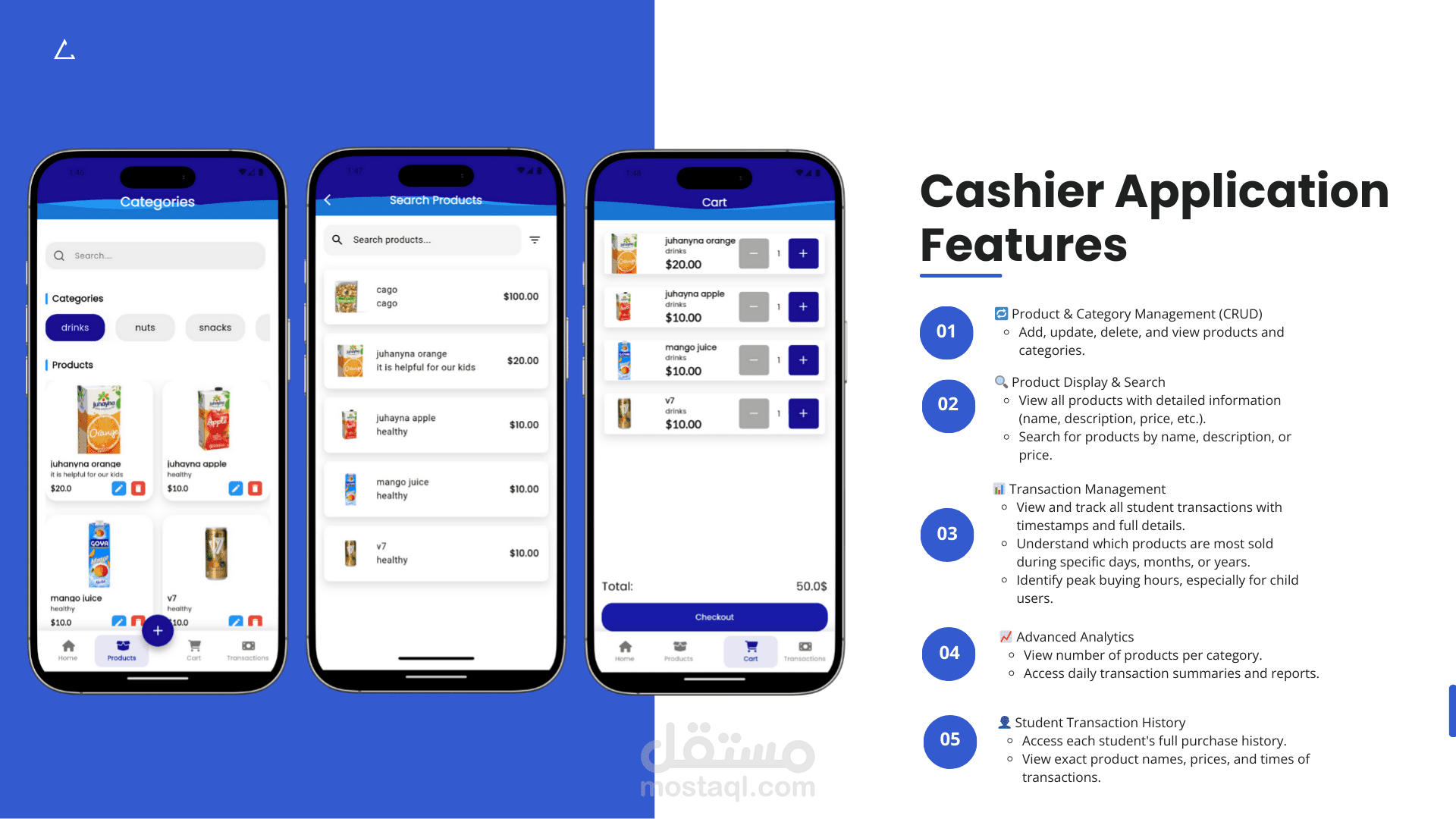 ومتابعة المنتجات التي يشتريها طالب من كاشير وتحديد منتجات المسموح للطالب شرائها