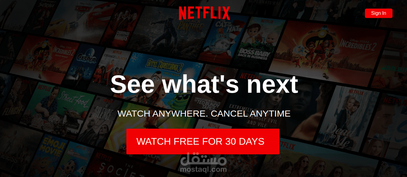 هذا المشروع عبارة عن الصفحة الاولى من صفحات موقع الافلام المعروف Netflix.