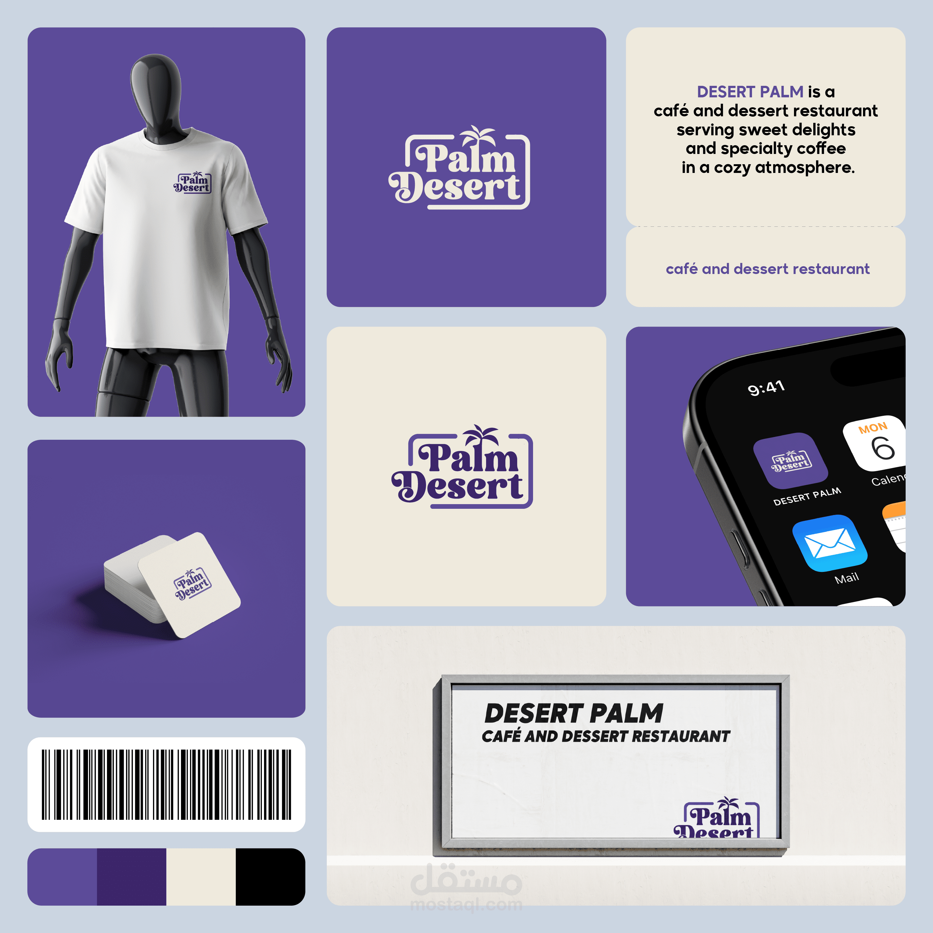 شعار ضمن هوية بصرية لمطعم وكافية desert palm