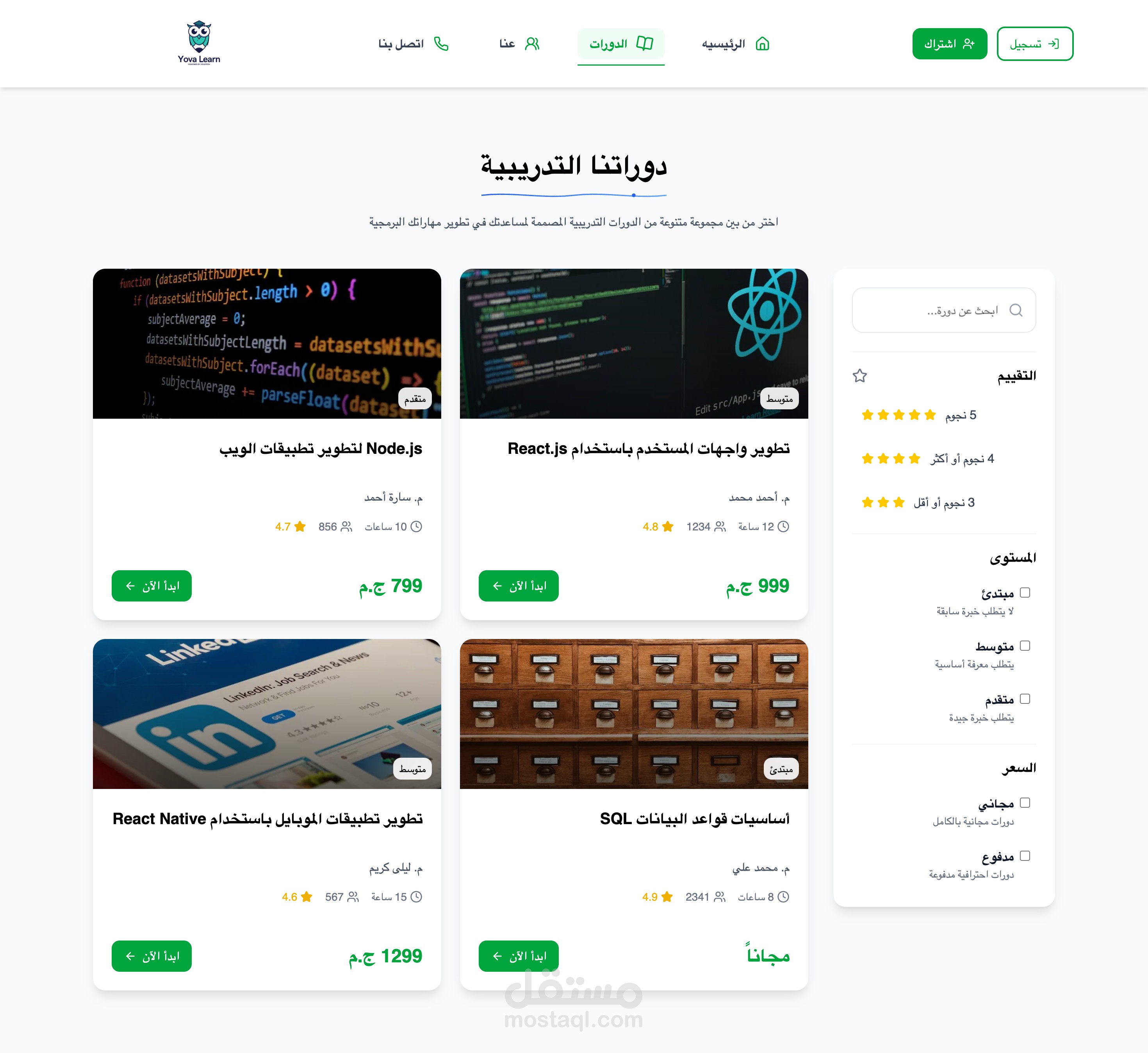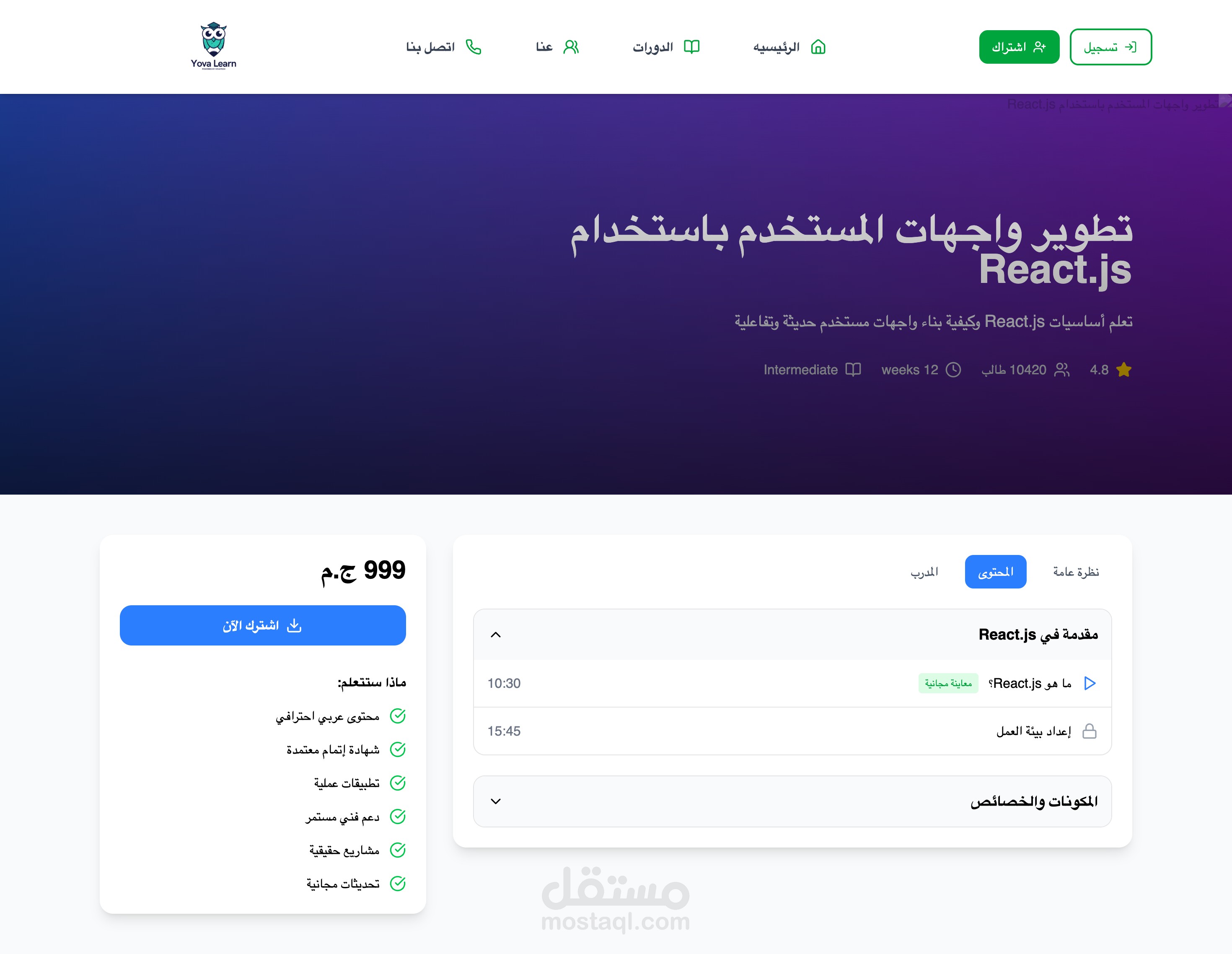 •تعلم بناء تطبيقات ويب وموبايل حقيقية من البداية للنهاية.