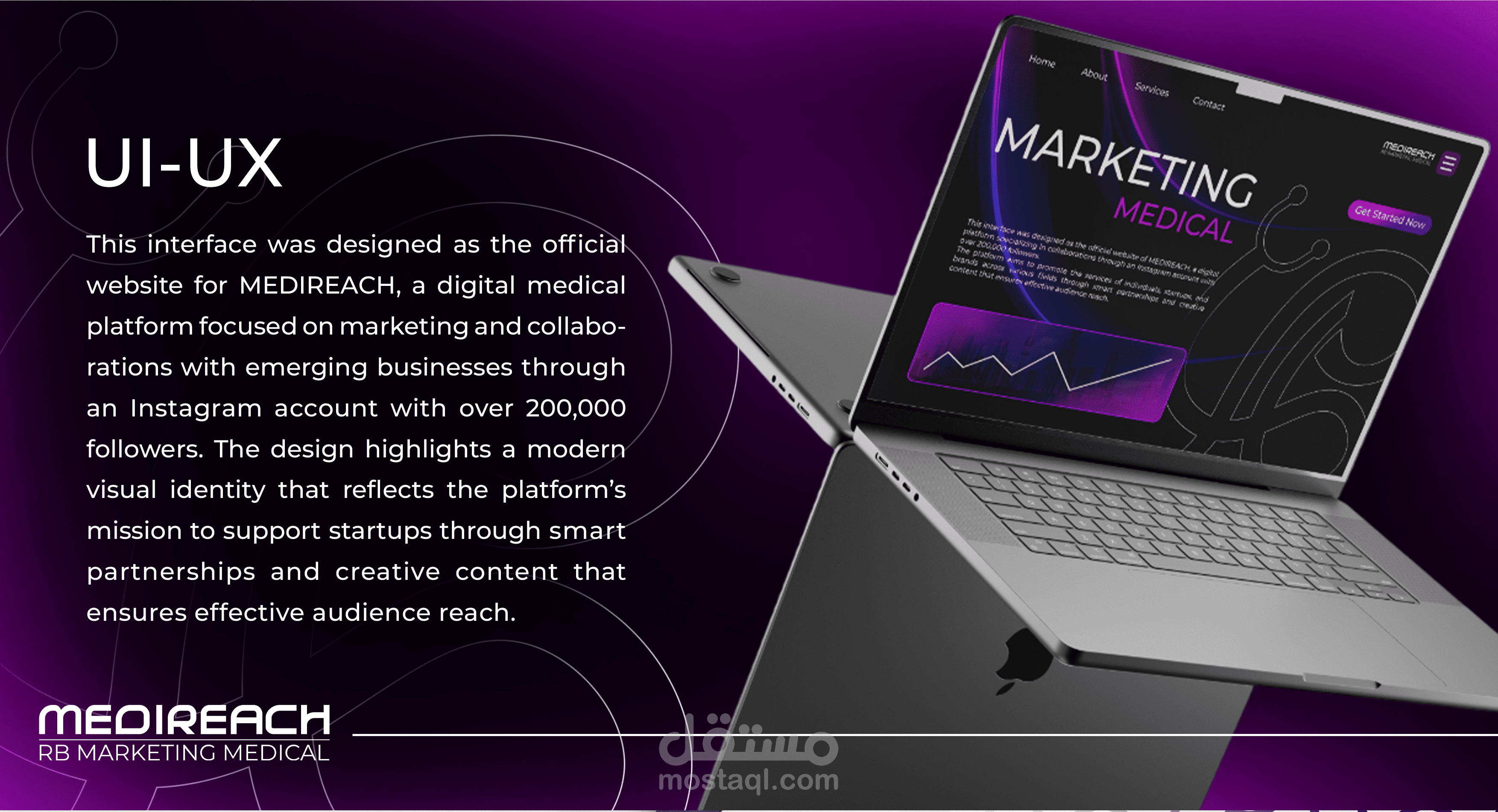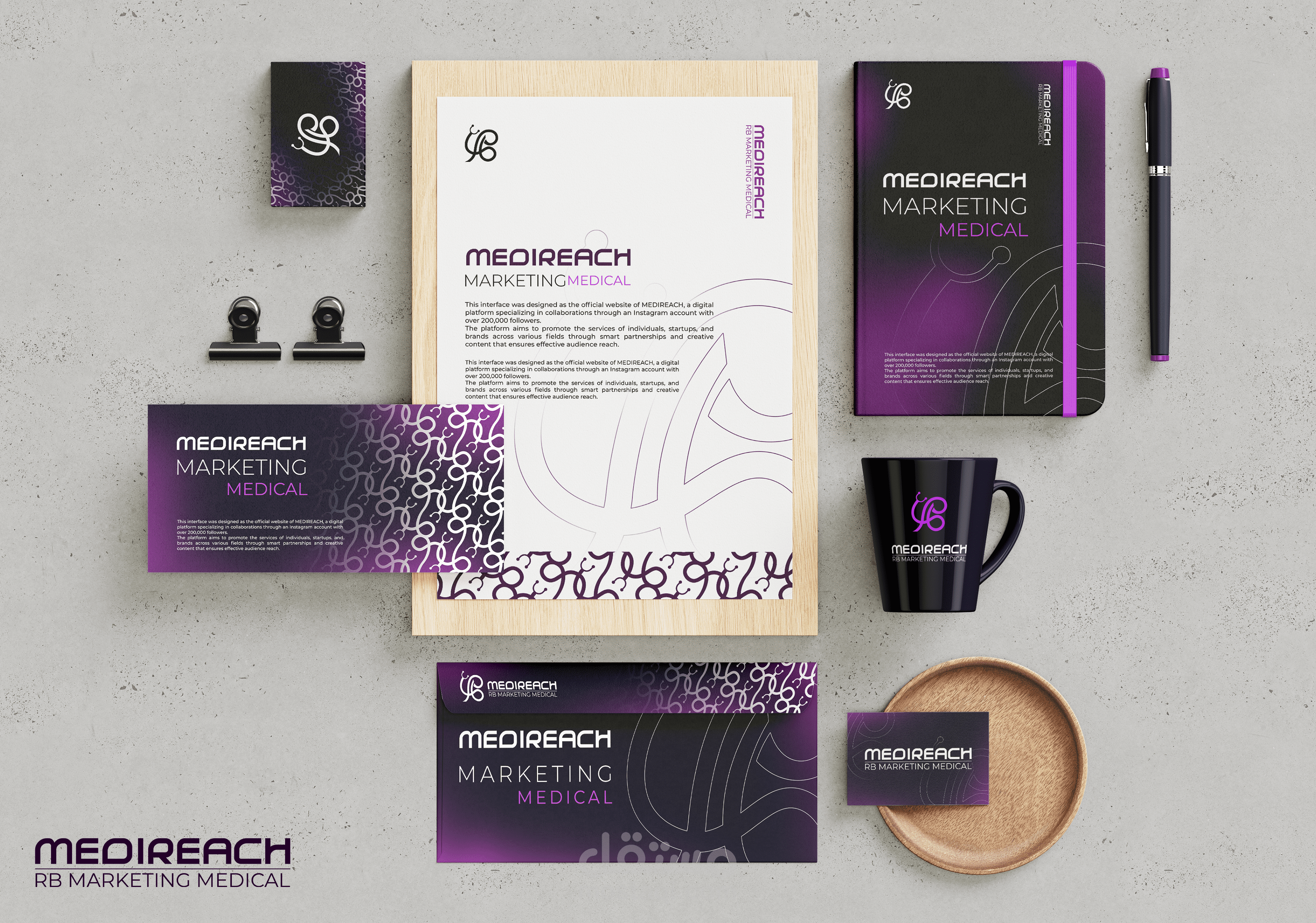 MediReach is a modern brand identity project designed for a company operating in medical services, marketing, and order management. The goal was to create a clean, professional logo subtly inspired by the letters "BR" without directly displaying them. The branding combines a medical feel with corporate trust, using a blue-toned color palette, soft typography, and adaptable visuals. Deliverables included logo design, color and font guidelines, business card, and social media templates tailored for consistent digital presence
