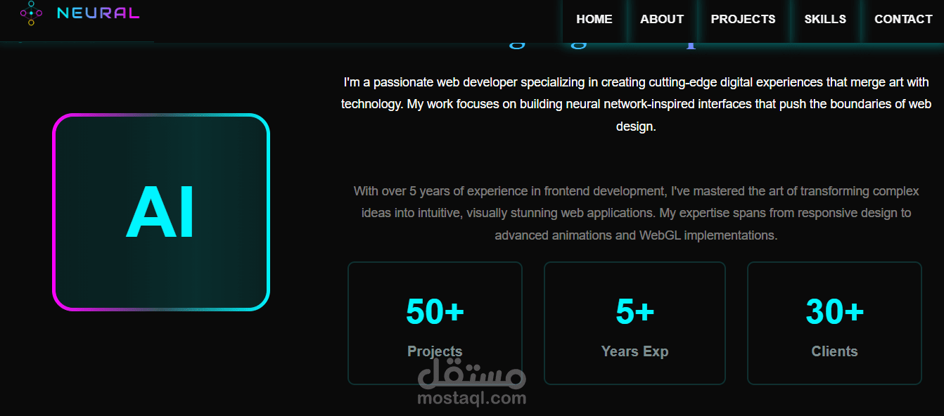 هذا المشروع يعكس خبرتي في بناء واجهات أمامية احترافية وقابلة للاستخدام في مشاريع حقيقية مثل مواقع الشركات، المتاجر الإلكترونية أو التطبيقات التفاعلية."