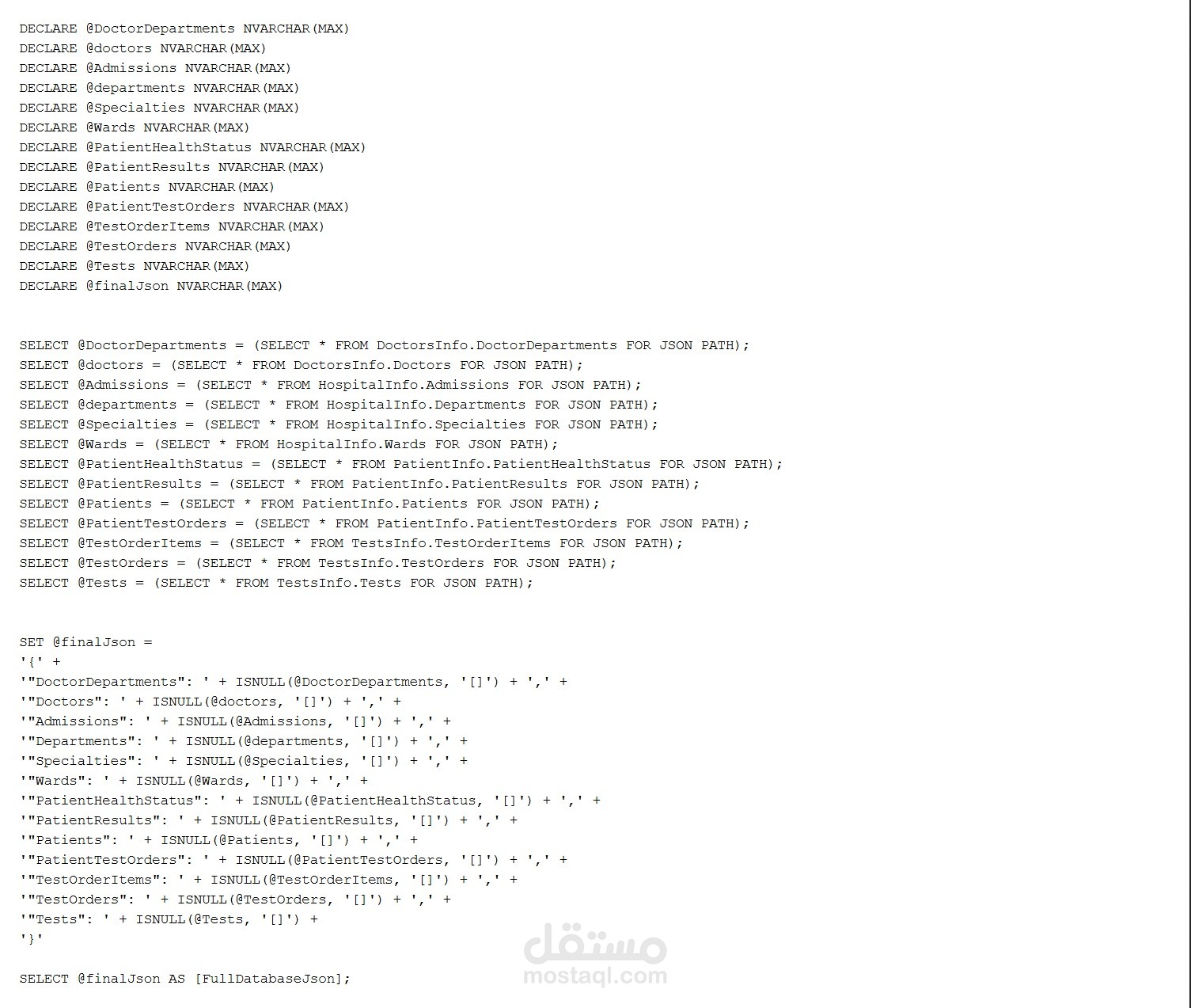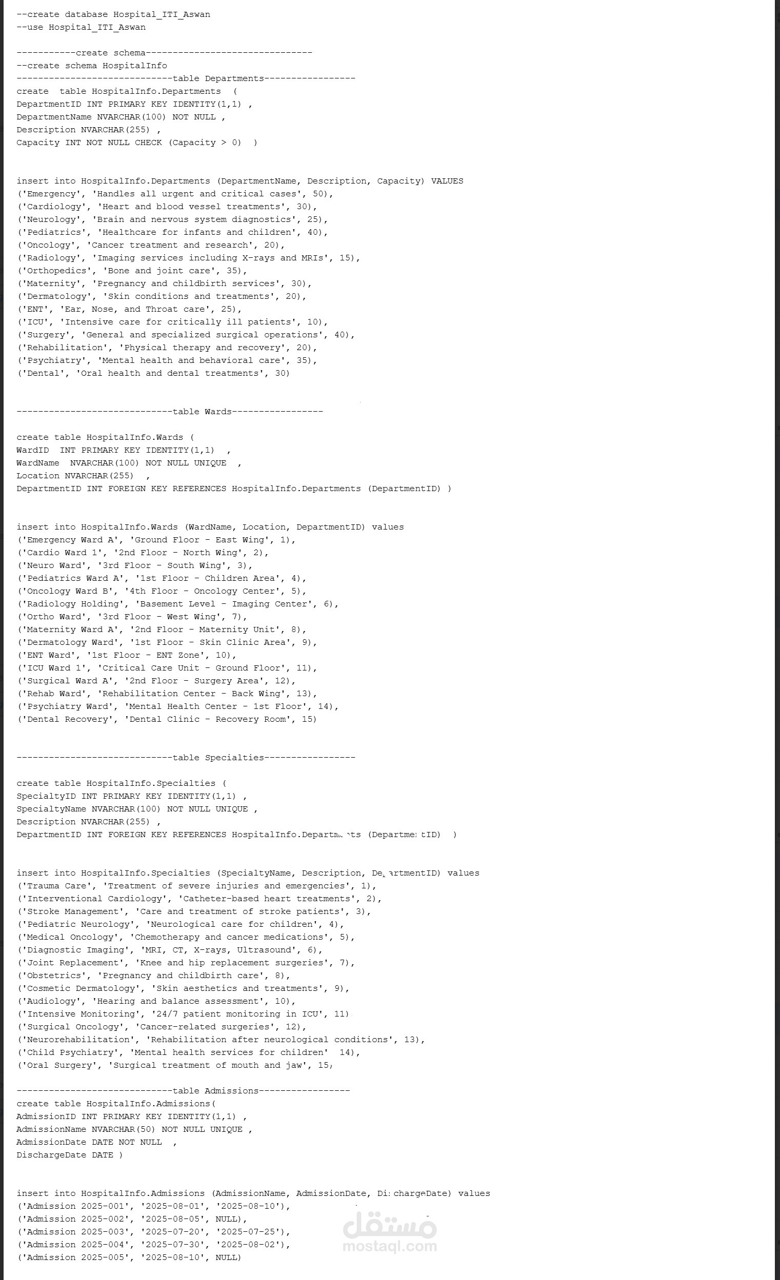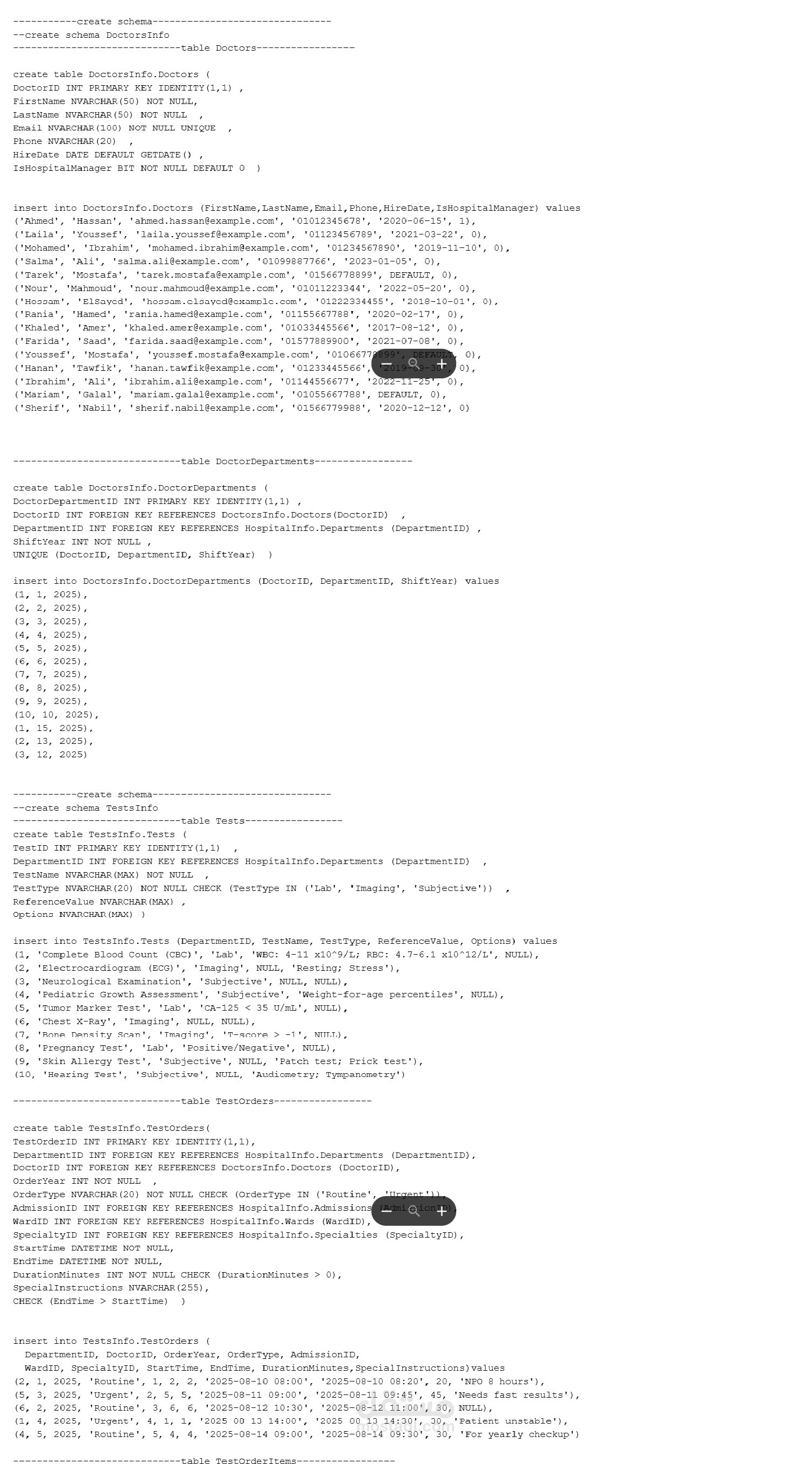 قمت بتصميم وتنفيذ نظام قاعدة بيانات متكامل لإدارة مستشفى باستخدام SQL Server، بداية من تحليل المتطلبات وحتى التنفيذ العملي.