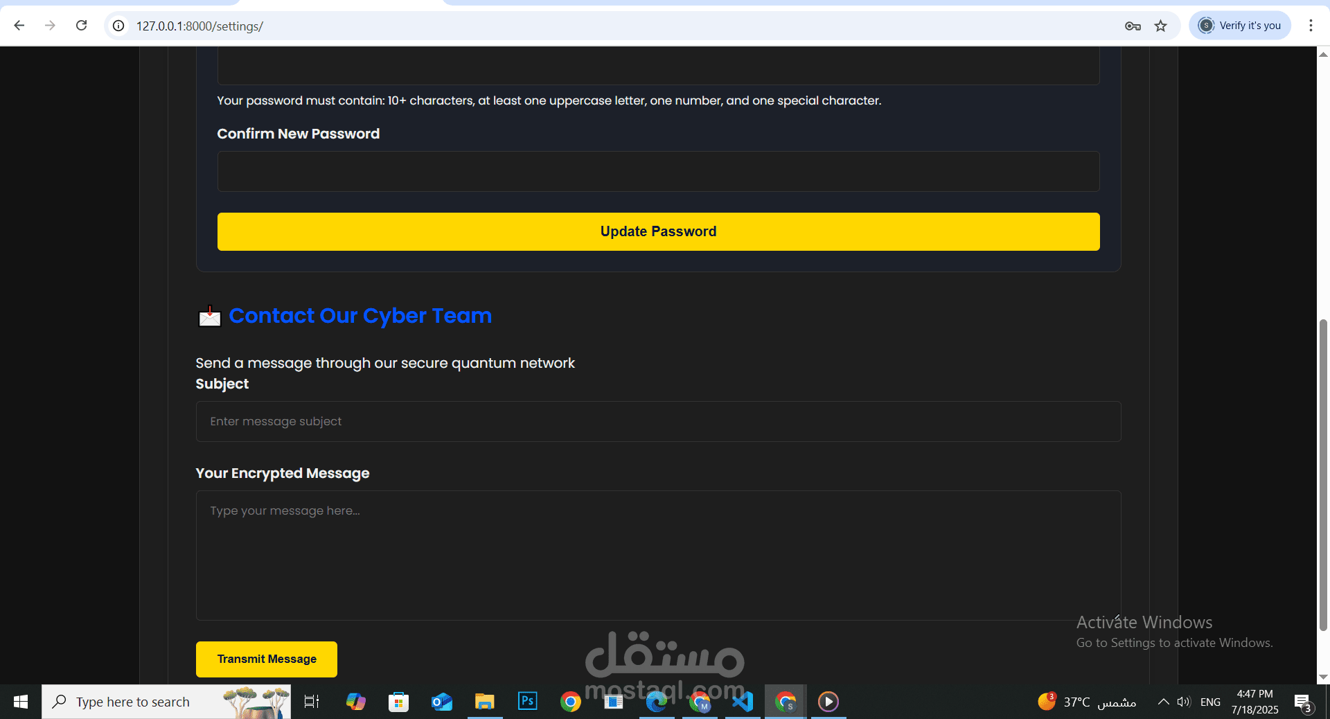 تحقق قوي من كلمات المرور (10 أحرف على الأقل + حرف كبير + رقم + رمز خاص)