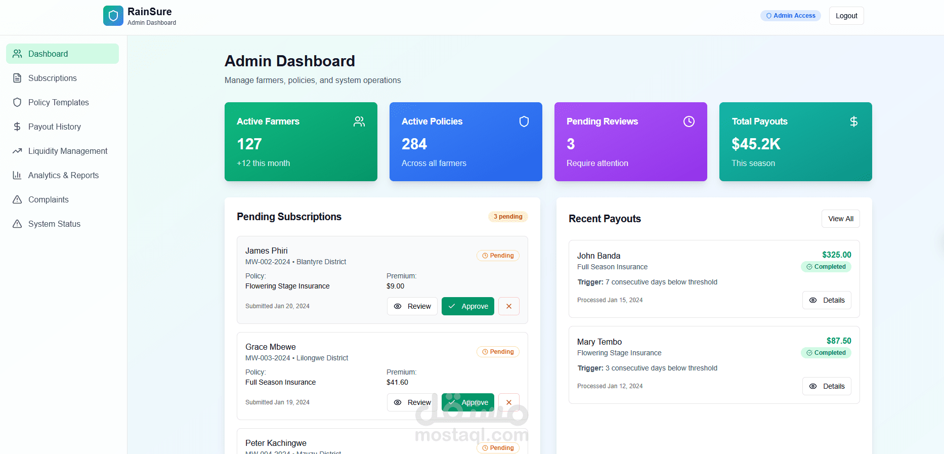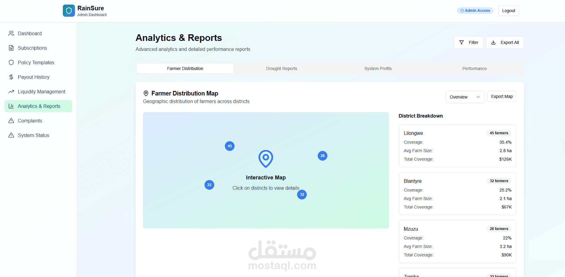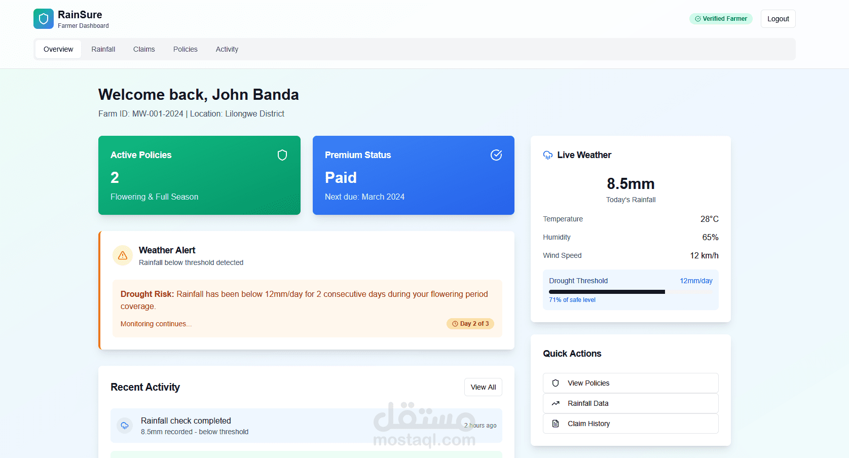 A decentralized insurance platform that automatically compensates maize farmers in Malawi when drought conditions hit — without the need to manually file claims or prove losses.