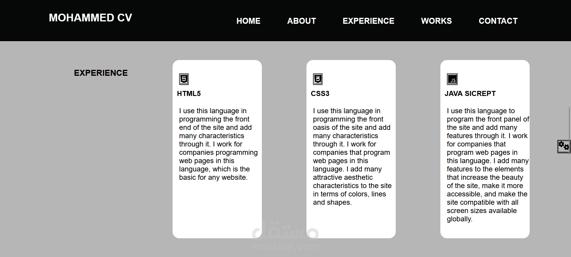 استخدم لغة html , css , js .