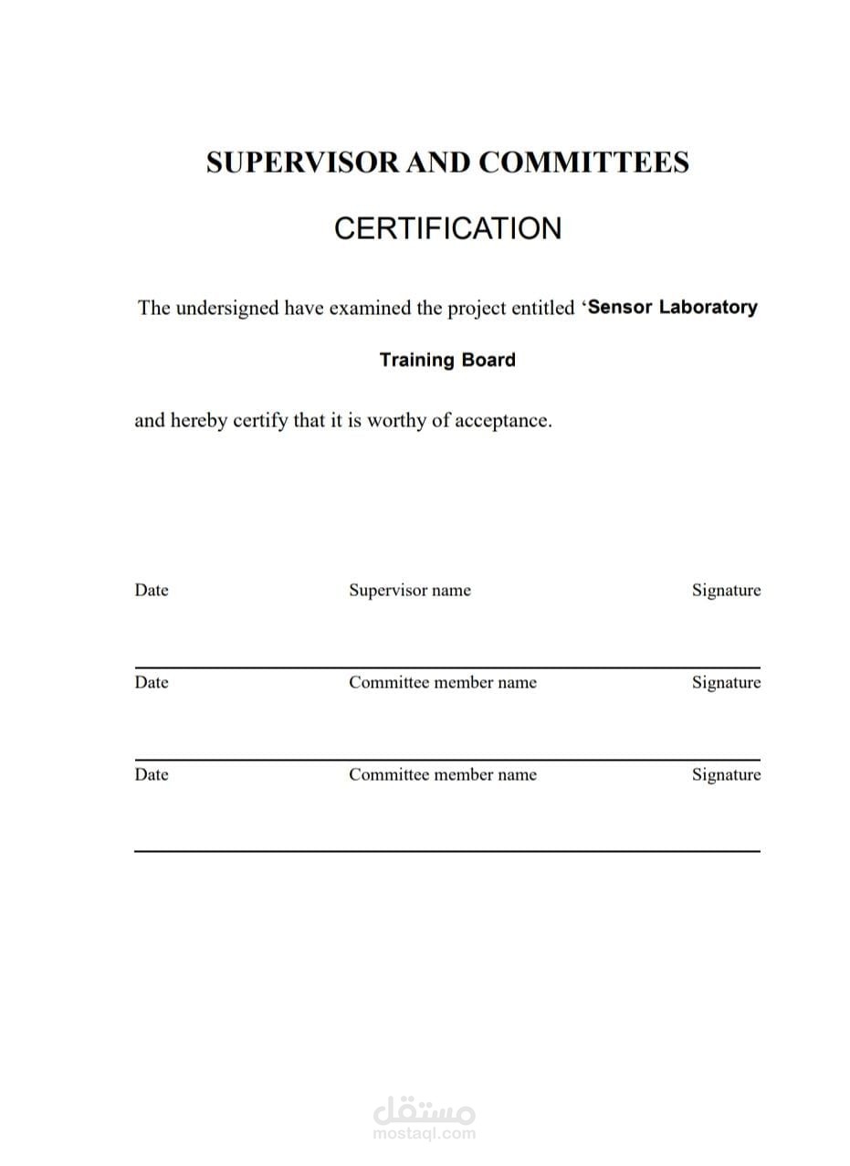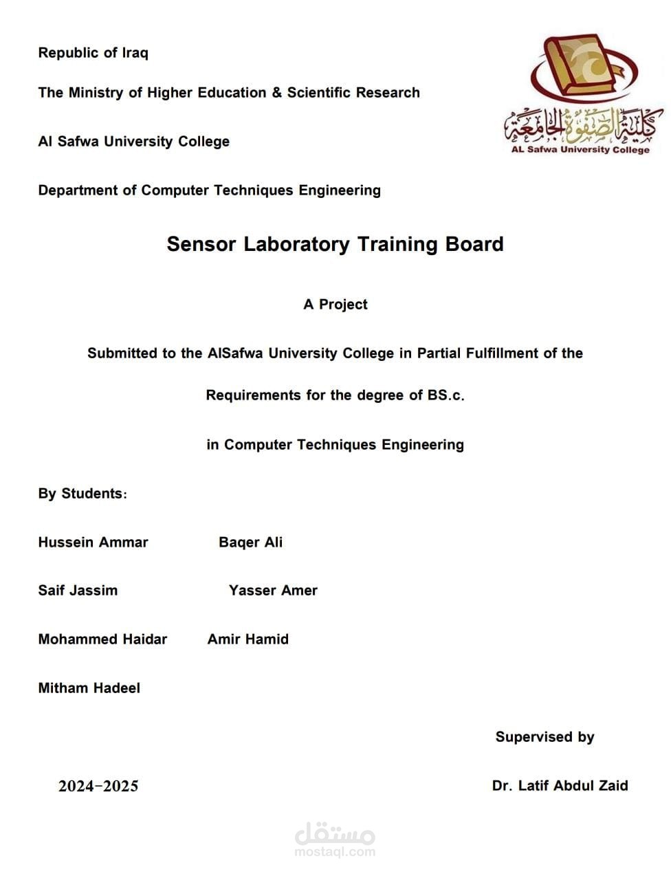 انجزت بحث بعنوان Sensor Laboratory Training Board مُقدم إلى كلية الصفوة الجامعية استكمالاً لمتطلبات الحصول على درجة البكالوريوس في هندسة الحاسوب.