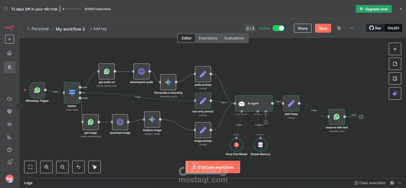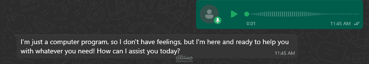 بتعاني من فقدان عملاء بسبب التأخر في الرد على استفساراتهم؟ مشروعنا بيقدملك حل مبتكر: AI Agent متكامل على واتساب يرد فوراً على الرسائل النصية، الصور، والتسجيلات الصوتية.