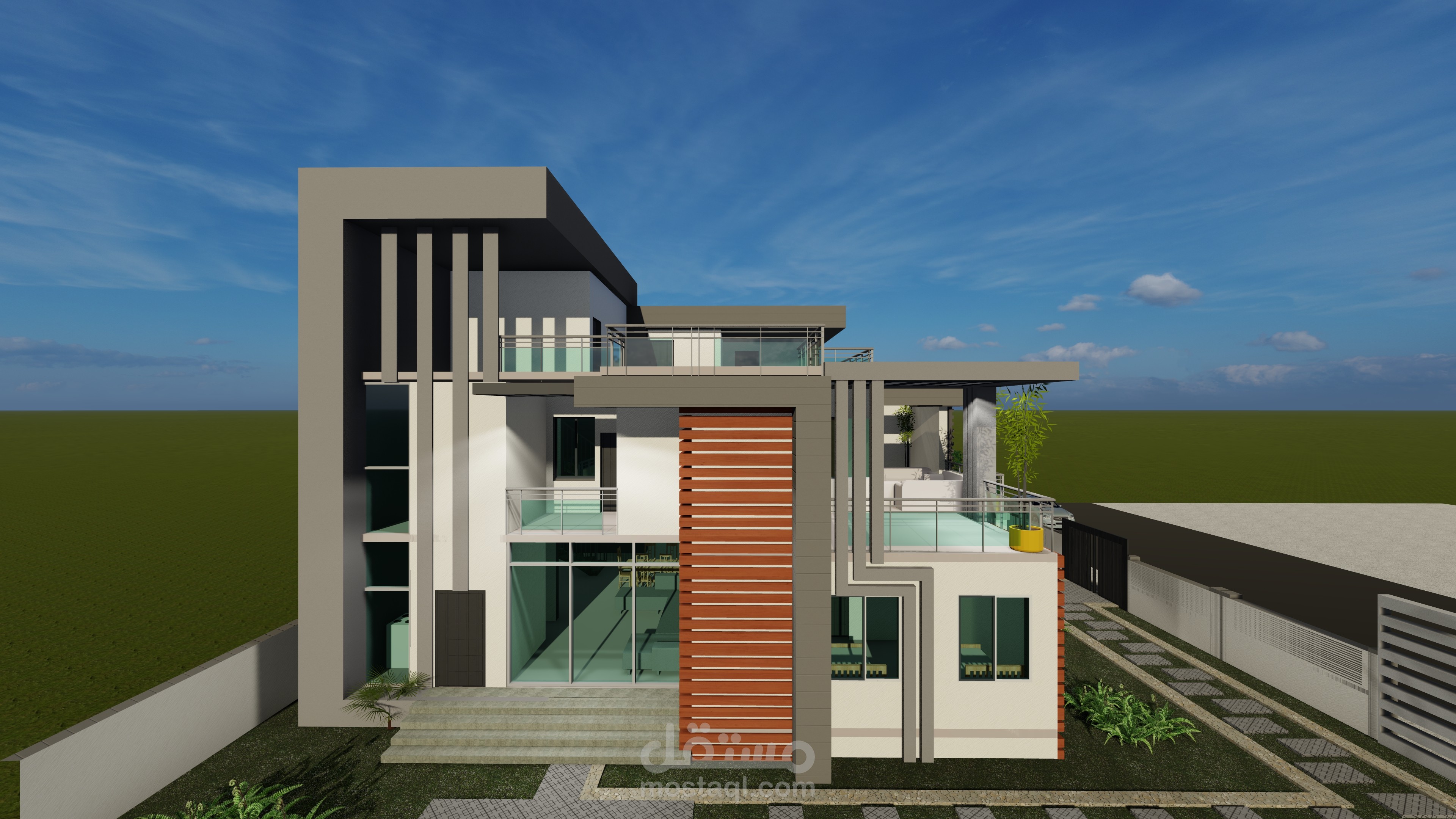 واجهه لفيلا بمساحه 600 متر مربع مصممه بالريفيت وتمت الرندره بلوميون