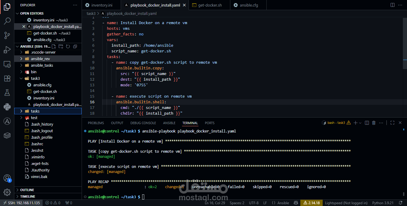 Developed and executed an Ansible automation project to install and configure Docker on a remote virtual machine