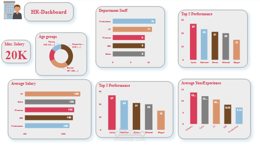 تم إعداد لوحة Power BI لتقديم رؤى حول بيانات الموظفين لشركة وهمية. تضمنت اللوحة تحليل  متوسط سنوات الخبرة في كل قسم، توزيع الأعمار والرواتب عبر الأقسام، بالإضافة إلى بطاقةKPI تعرض أعلى راتب. تساعد هذه اللوحة الإدارة على اتخاذ قرارات استراتيجية أفضل في إدارة الموارد البشرية.