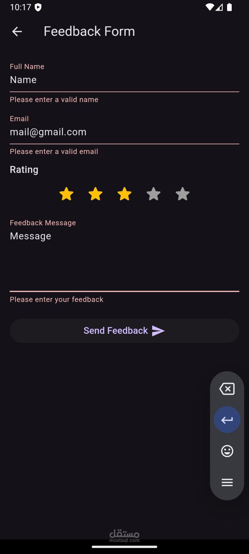 تطبيق Flutter بسيط لتلقّي الملاحظات، يقوم بمحاكاة إرسال رسالة ملاحظات إلى المالك، كما يحفظ الملاحظات محليًّا على الجهاز.