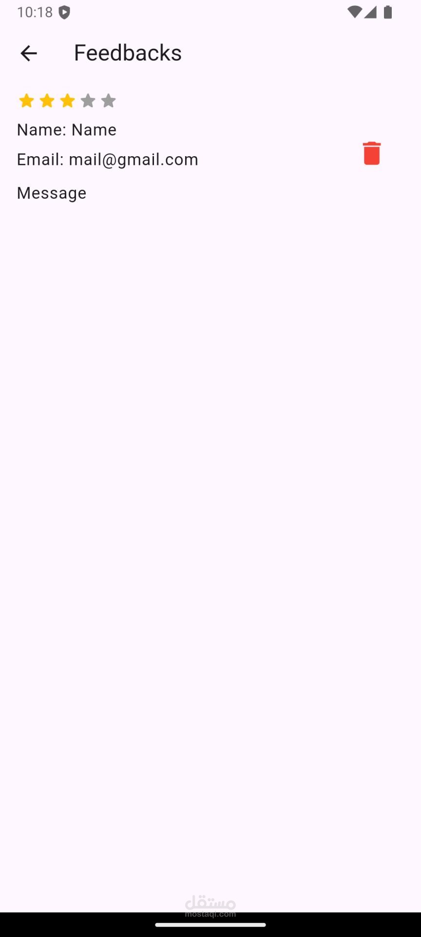 يمكن للمستخدم عرض الملاحظات المُرسلة وحذفها من خلال الضغط على زر "View Feedbacks" في الشاشة الرئيسيّة.
