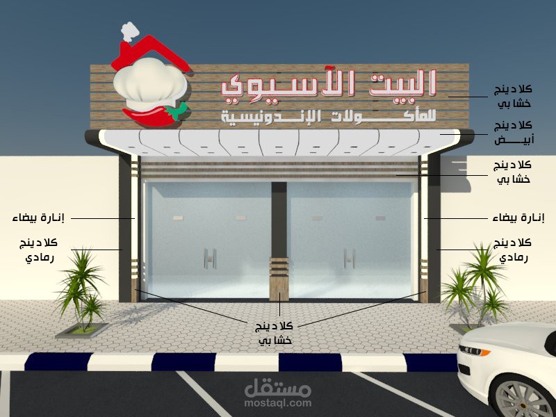 تم العمل على اعادة تصميم الواجهة بطريقة حديثة وبما يتناسب مع مواد التشطيب الحديثة،، كما تم العمل على تصميم اليافطة والشعار الخاص به ..