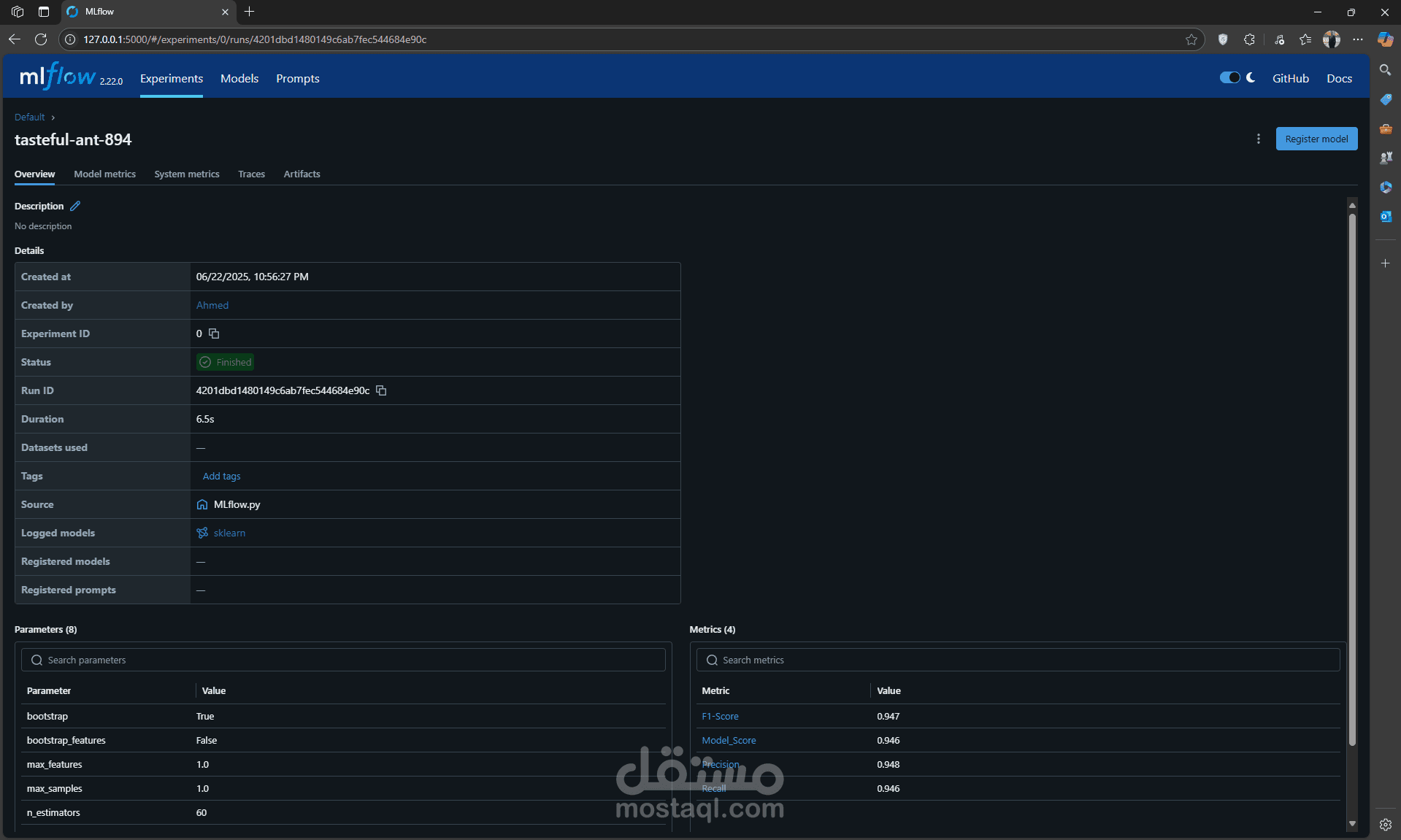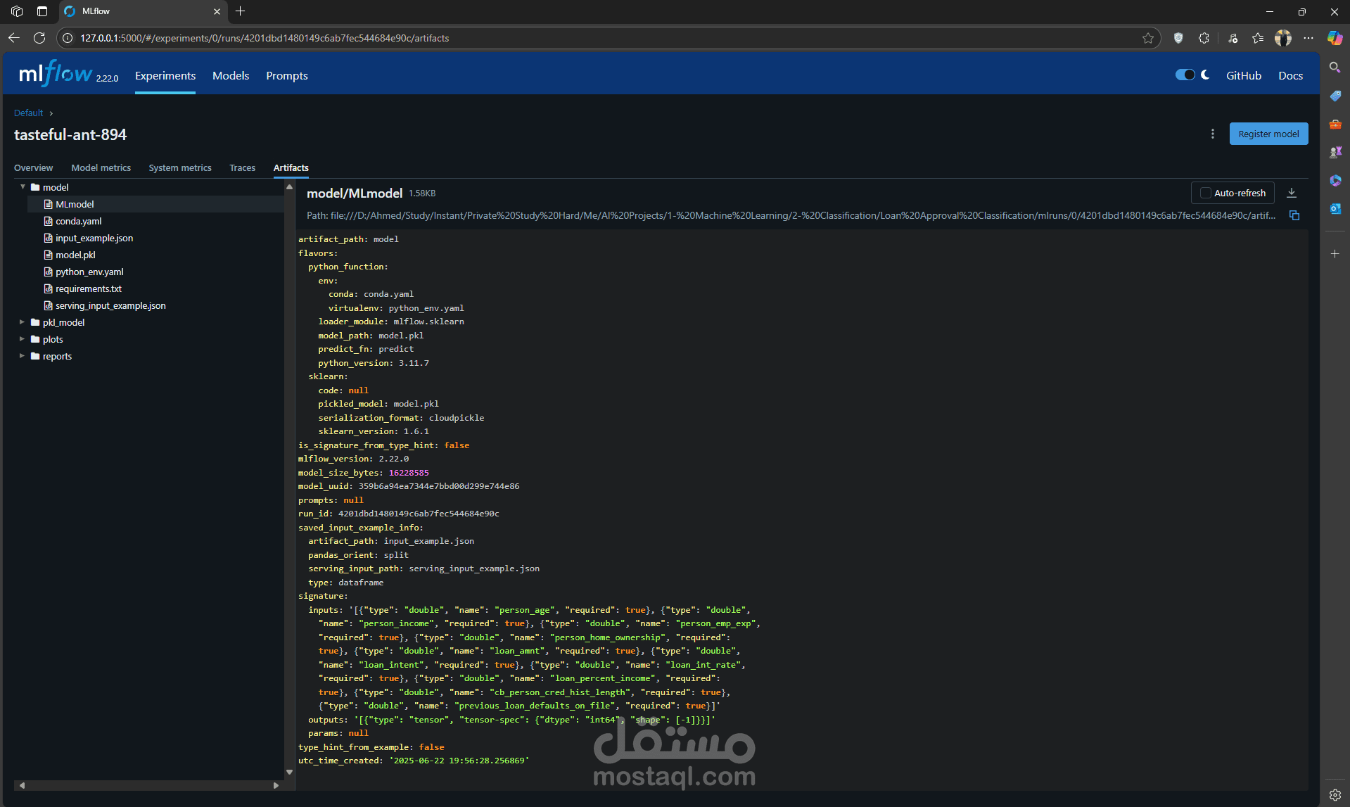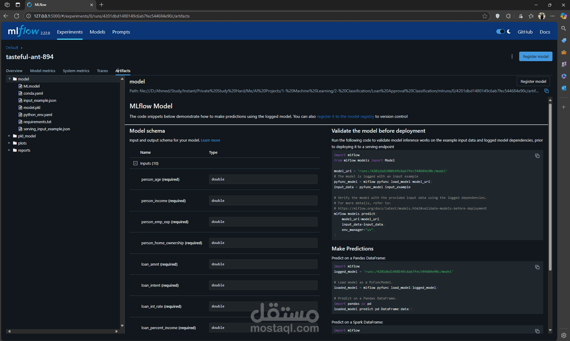 • Built a Streamlit-based loan approval app achieving 95% accuracy using Bagging, with MLflow for experiment