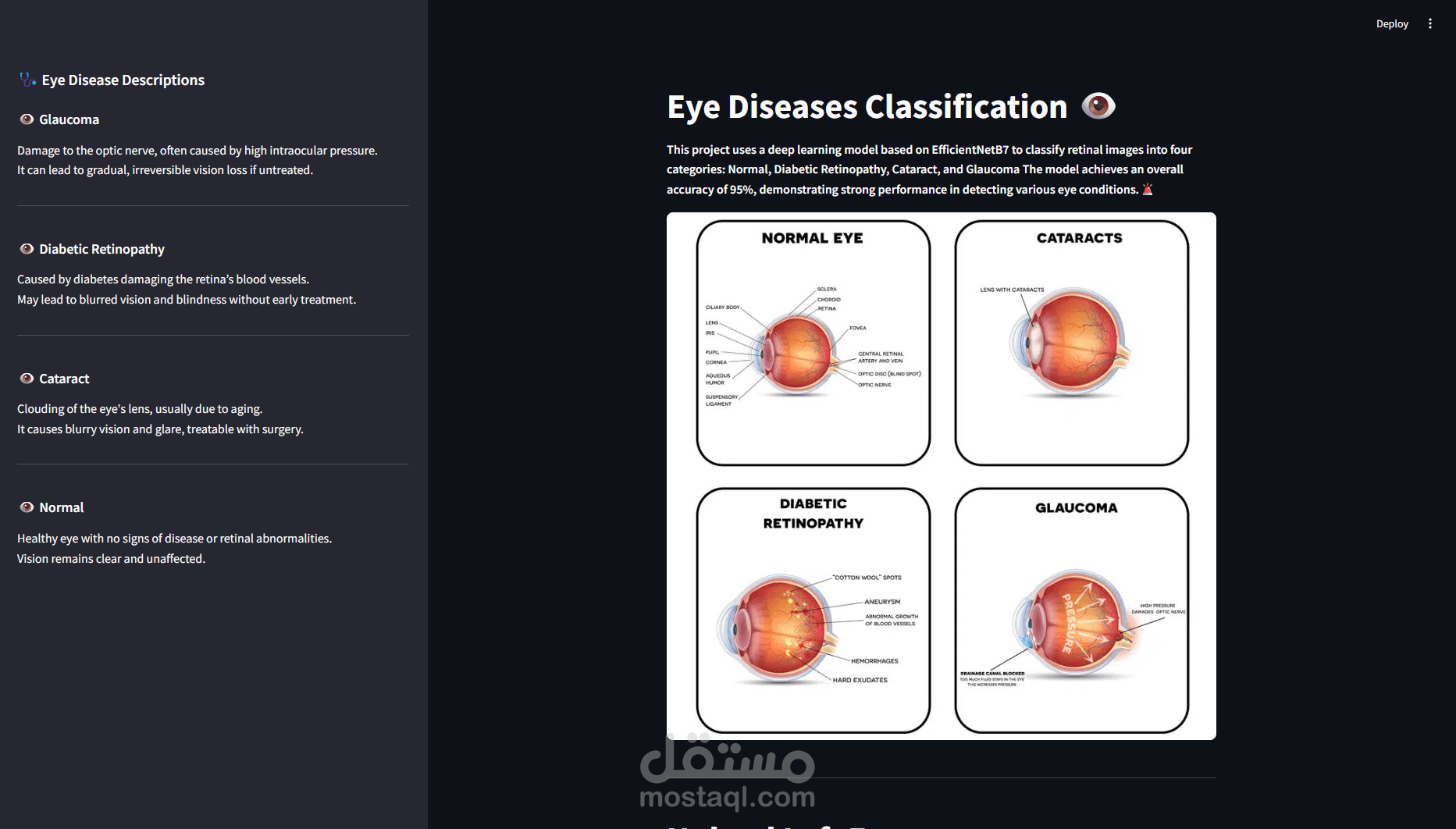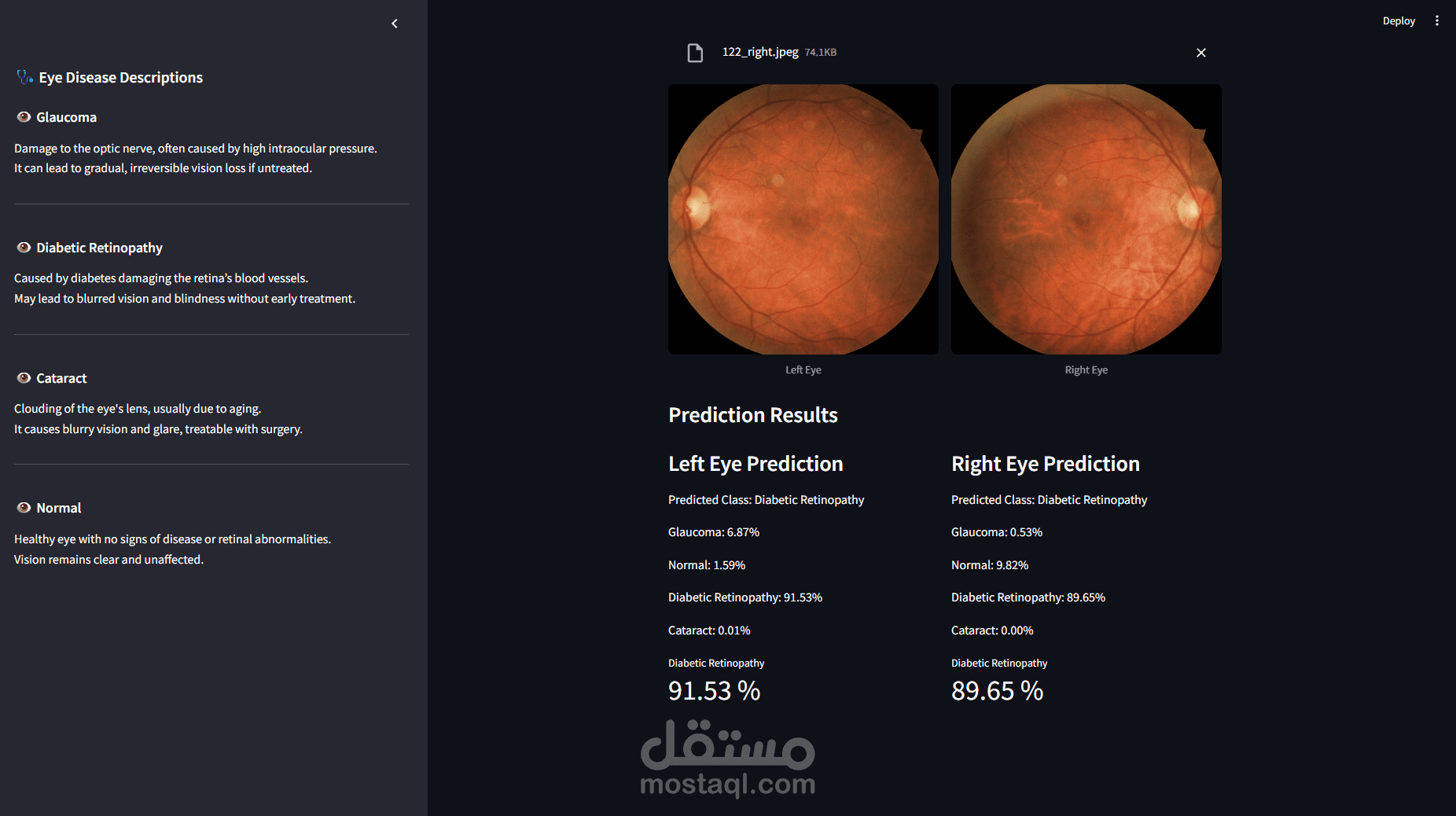 • Deployed as an interactive Streamlit app for real-time predictions to assist early ophthalmic diagnosis.
