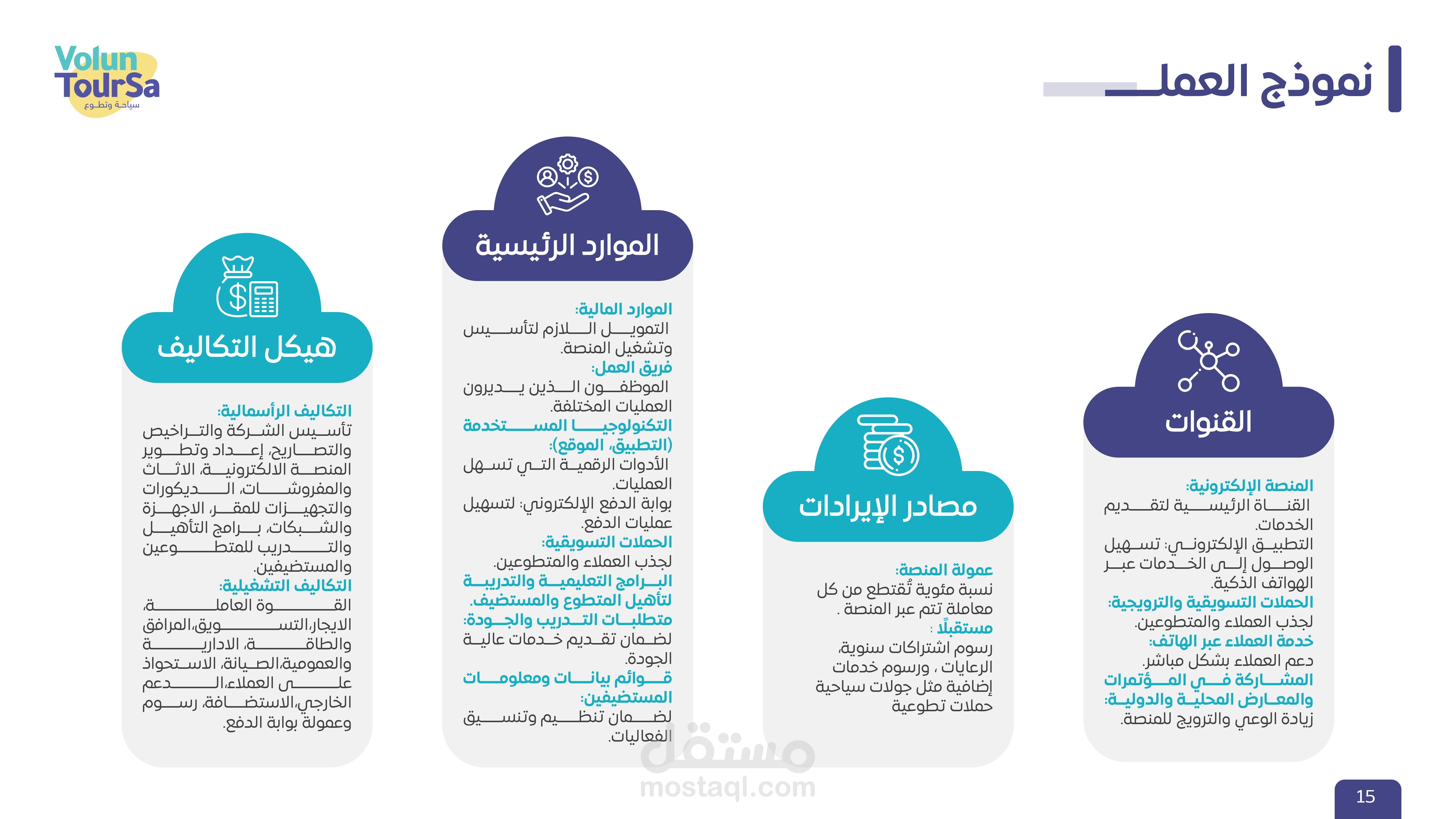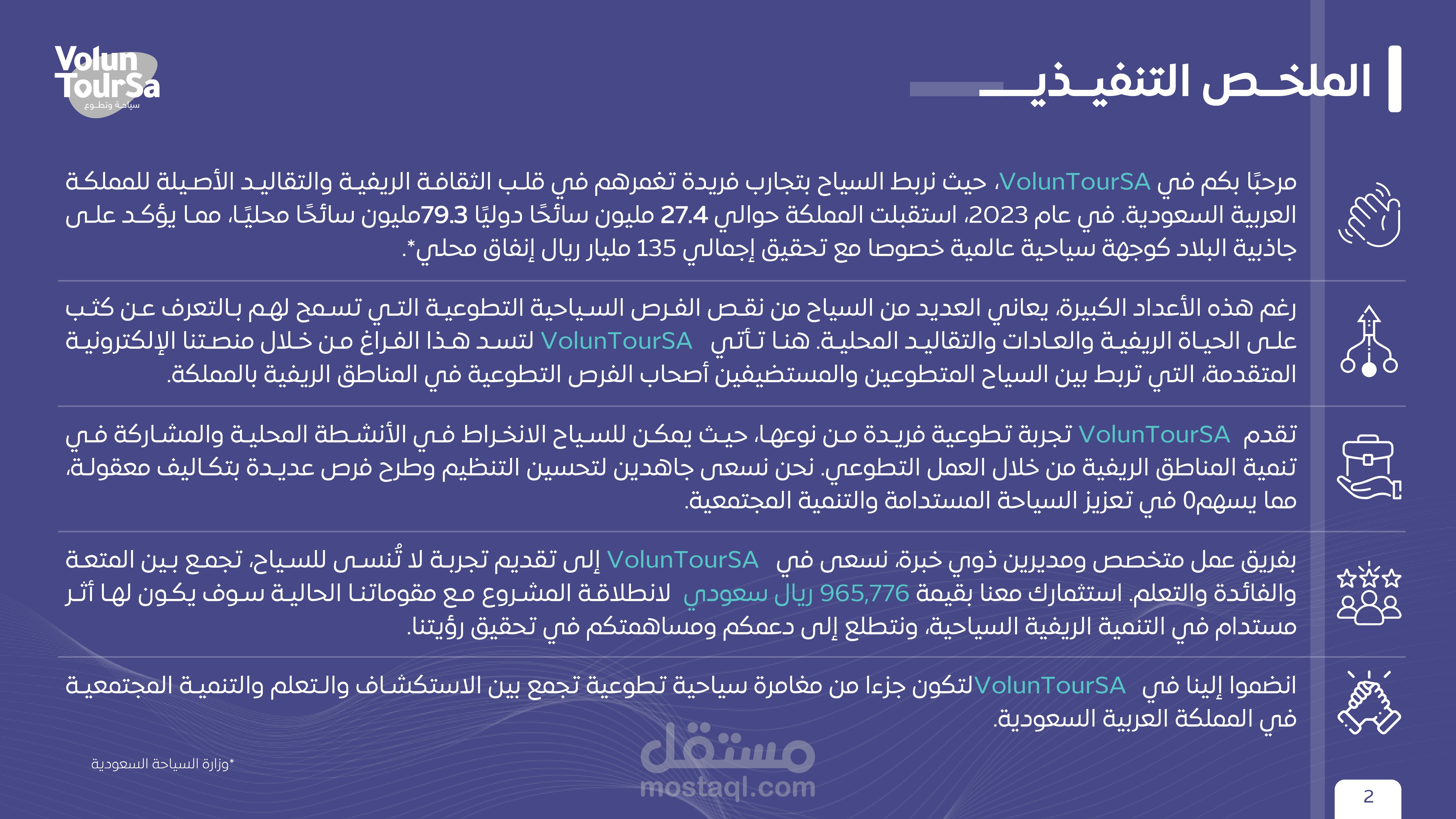 تصميم عرض تقديمي متكامل باستخدام أسلوب بصري جذاب وألوان متناسقة تعكس هوية المؤسسة.