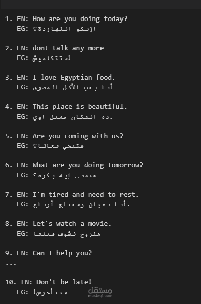 English sentences into Egyptian Arabic using the Helsinki-NLP/opus-mt-en-ar model from the Hugging Face