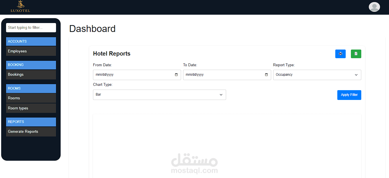 نظام ويب لإدارة المستخدمين والأنشطة مع تقارير ورسوم بيانية.