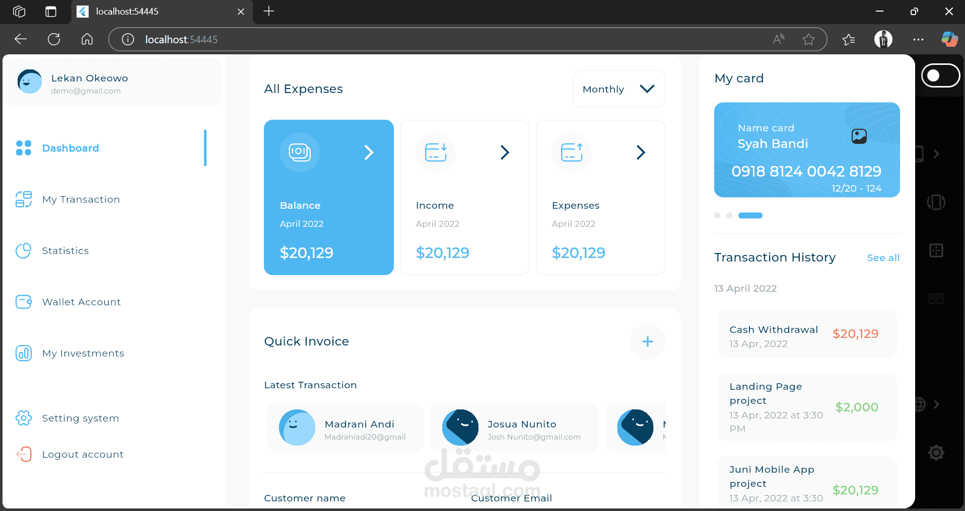 Designed and implemented a single codebase dashboard using Flutter that adapts seamlessly to mobile,