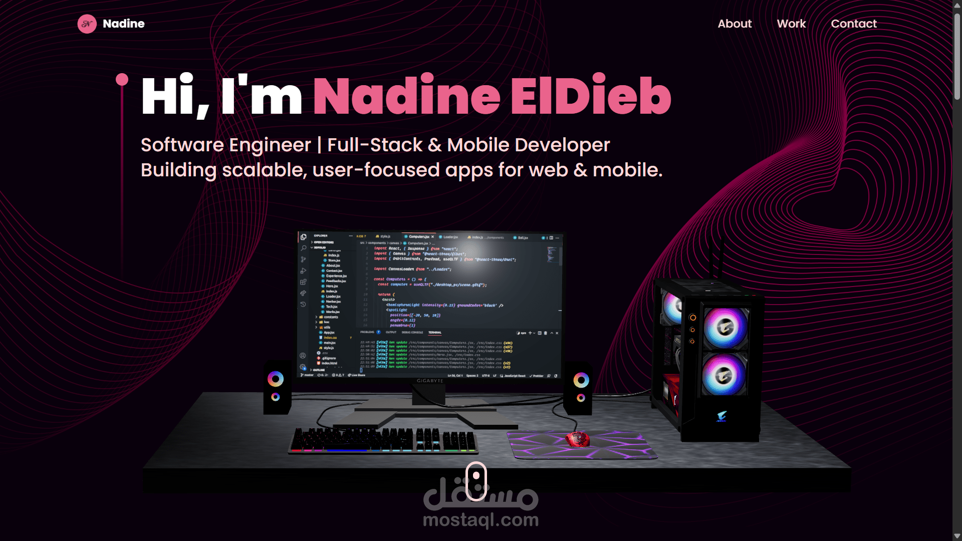 موقع ثلاثي الابعاد بالكامل بعناصر تفاعلية و مصمم لعرض أعمالي بشكل احترافي